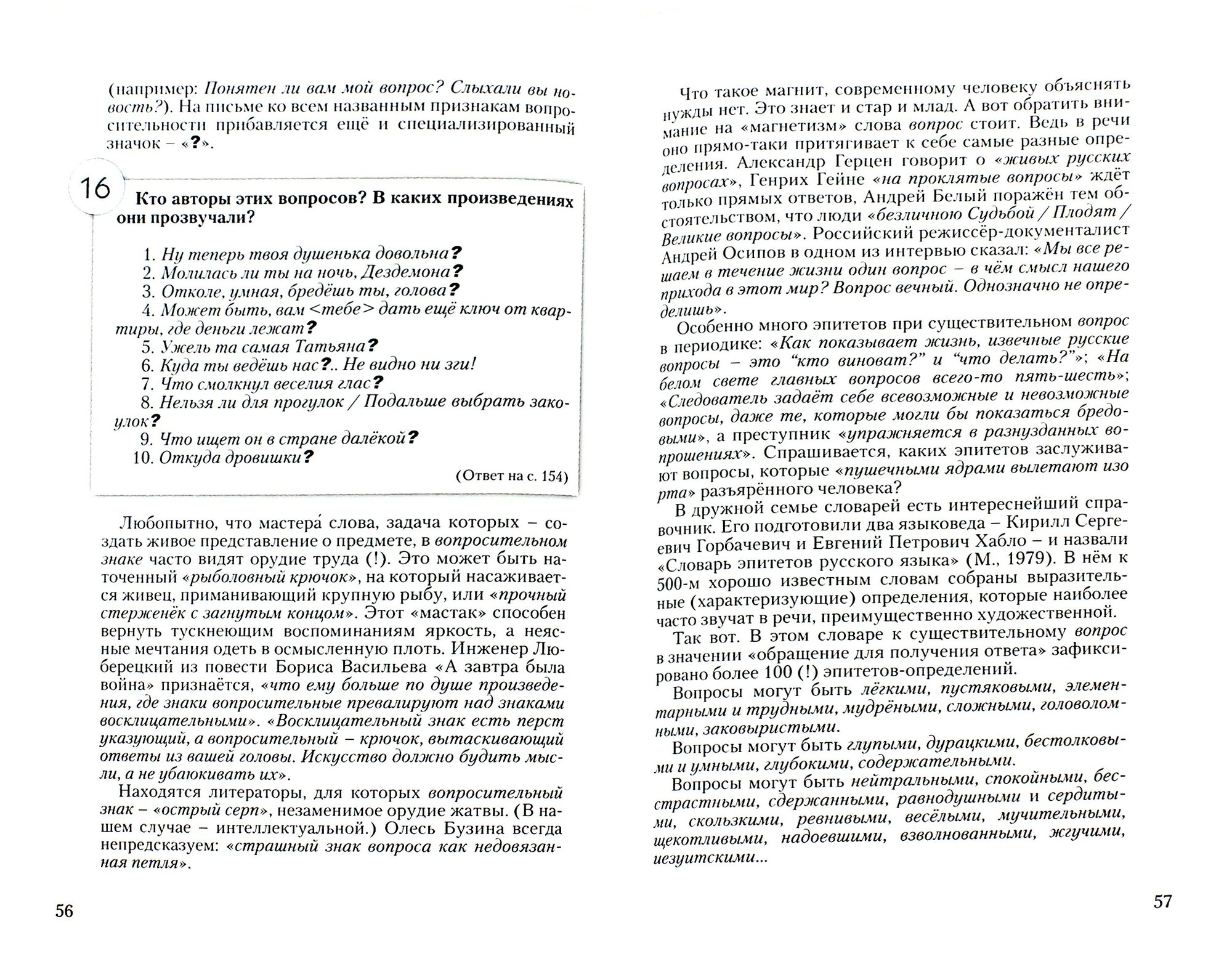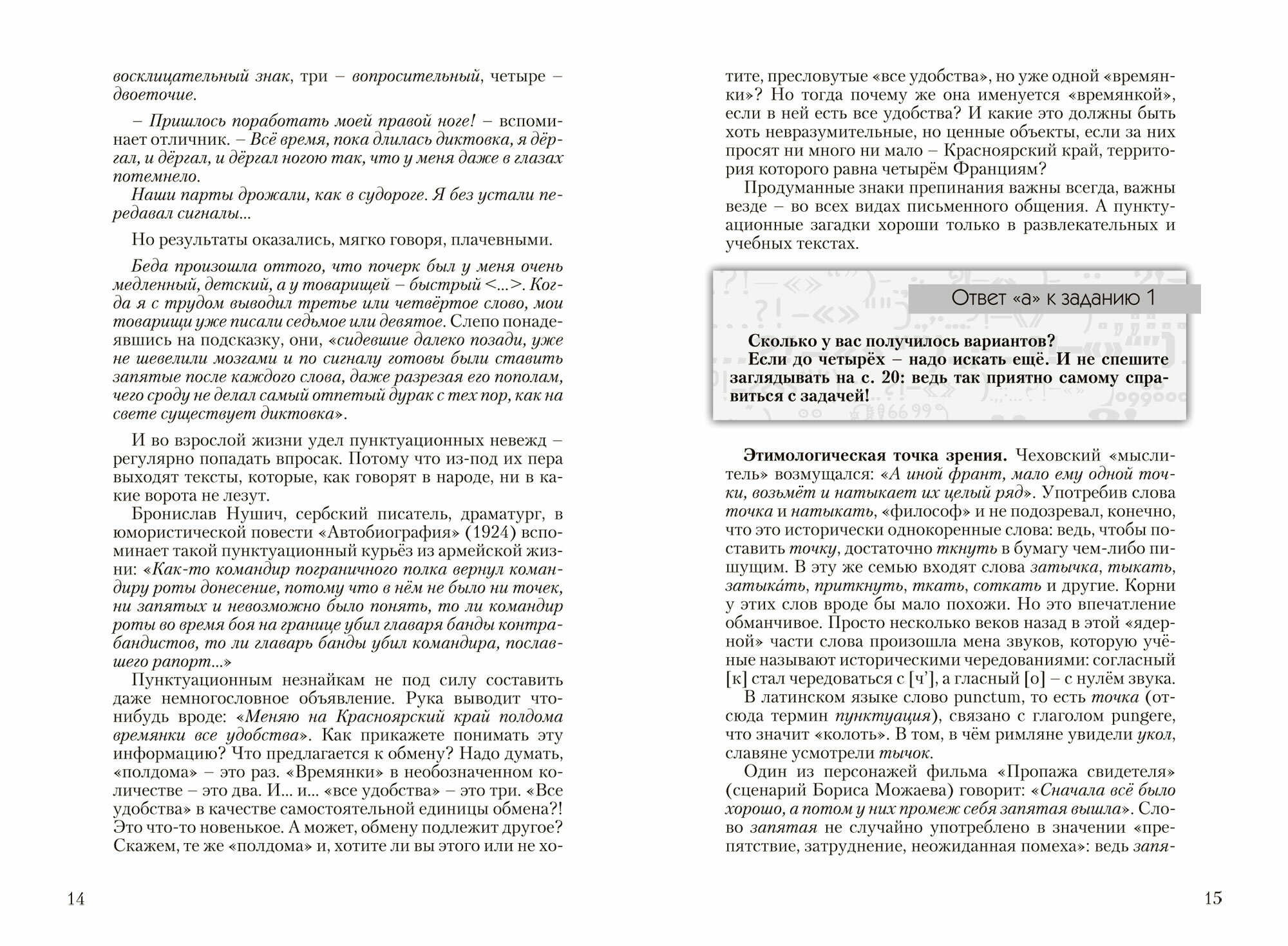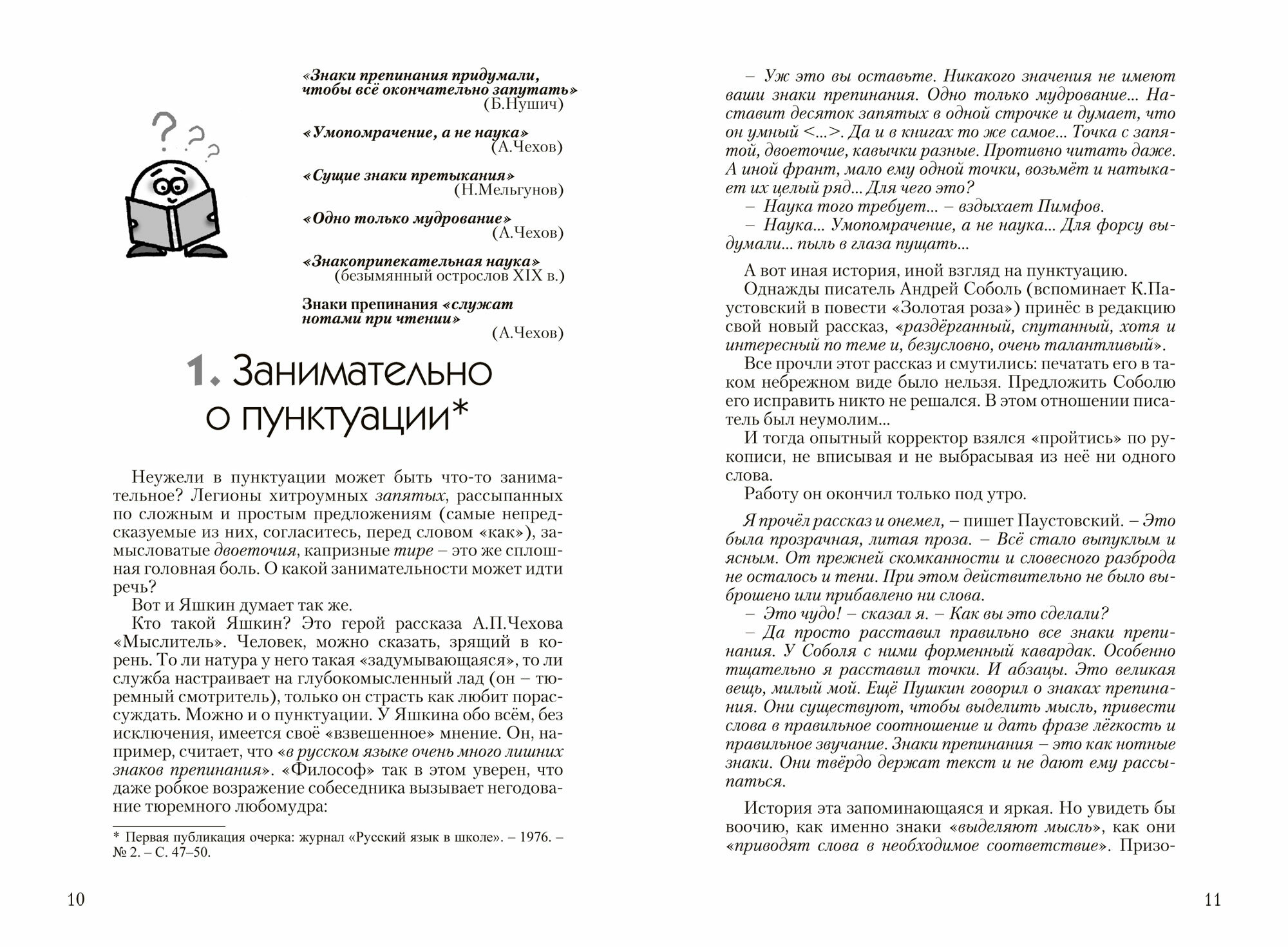 Книга состоит из очерков, которые впервые были напечатаны в журнале "Русский язык в школе" в разные годы. Казалось бы, в русской письменной речи всего 10 знаков препинания, а сколько всего интересного и занимательного можно прочитать о них. В данной книге автор, между строк, задает интересные вопросы, на которые сразу хочется ответить. Переходя от главы к главе, погружаешься в мир прозы и поэзии, узнаешь новые для себя сведения о писателях и поэтах, одним словом, полностью погружаешься в мир литературы. Эта книга будет полезна всем, в том числе выпускникам 9 класса, которым предстоит писать сочинение на лингвистическую тему по пунктуации. Так подробно и доступно о пунктуационных знаках, об их значении в предложении и тексте нет ни в одном справочнике.