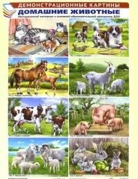 Демонстрационные картины "Домашние животные". Методические материалы к основной образовательной программе ДОО. Комплект из 8 плакатов. Текст на обороте рисунка.