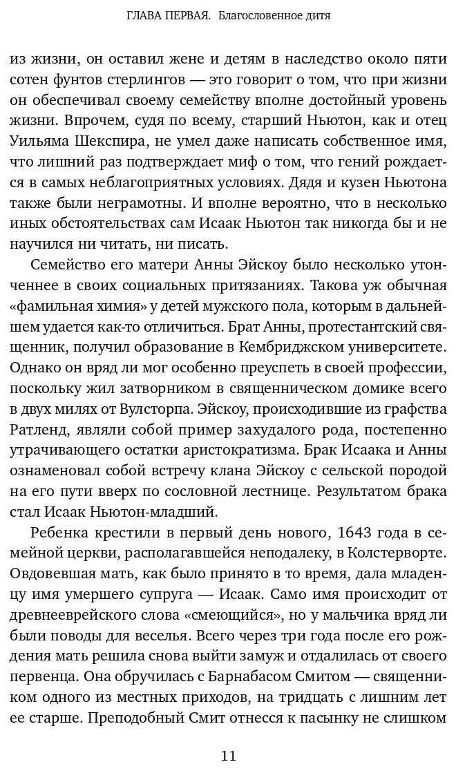 Перед вами жизнеописание Исаака Ньютона — величайшего гения, чьи научные взгляды навсегда изменили наш мир. Каким человеком он был? Какие обстоятельства подтолкнули его к знаменитым открытиям? Признанный мастер биографического жанра Питер Акройд рассказывает историю жизни сына простого землевладельца, который в возрасте 24 лет уже придумал исчисление с помощью бесконечно малых величин, расщепил белый свет на составляющие цвета и приступил к работе над теорией всемирного тяготения. Из книги, полной исторических подробностей, вы узнаете, почему Ньютон написал «Математические начала» на латыни, зачем он отложил издание «Оптики» на 30 лет, как боролся с фальшивомонетчиками на посту хранителя Монетного двора и как изменил принцип научного исследования, будучи председателем Королевского научного общества. Автор создает портрет великого ученого — человека честолюбивого, неуступчивого и безгранично преданного науке.