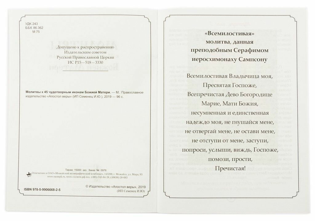 Обзор брошюры "Молитвы к 45 чудотворным иконам Божьей Матери"