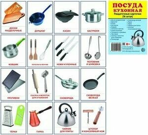 Посуда кухонная. Раздаточные карточки (16штук) (Автор не указан); Творческий центр Сфера Издательство, 2022