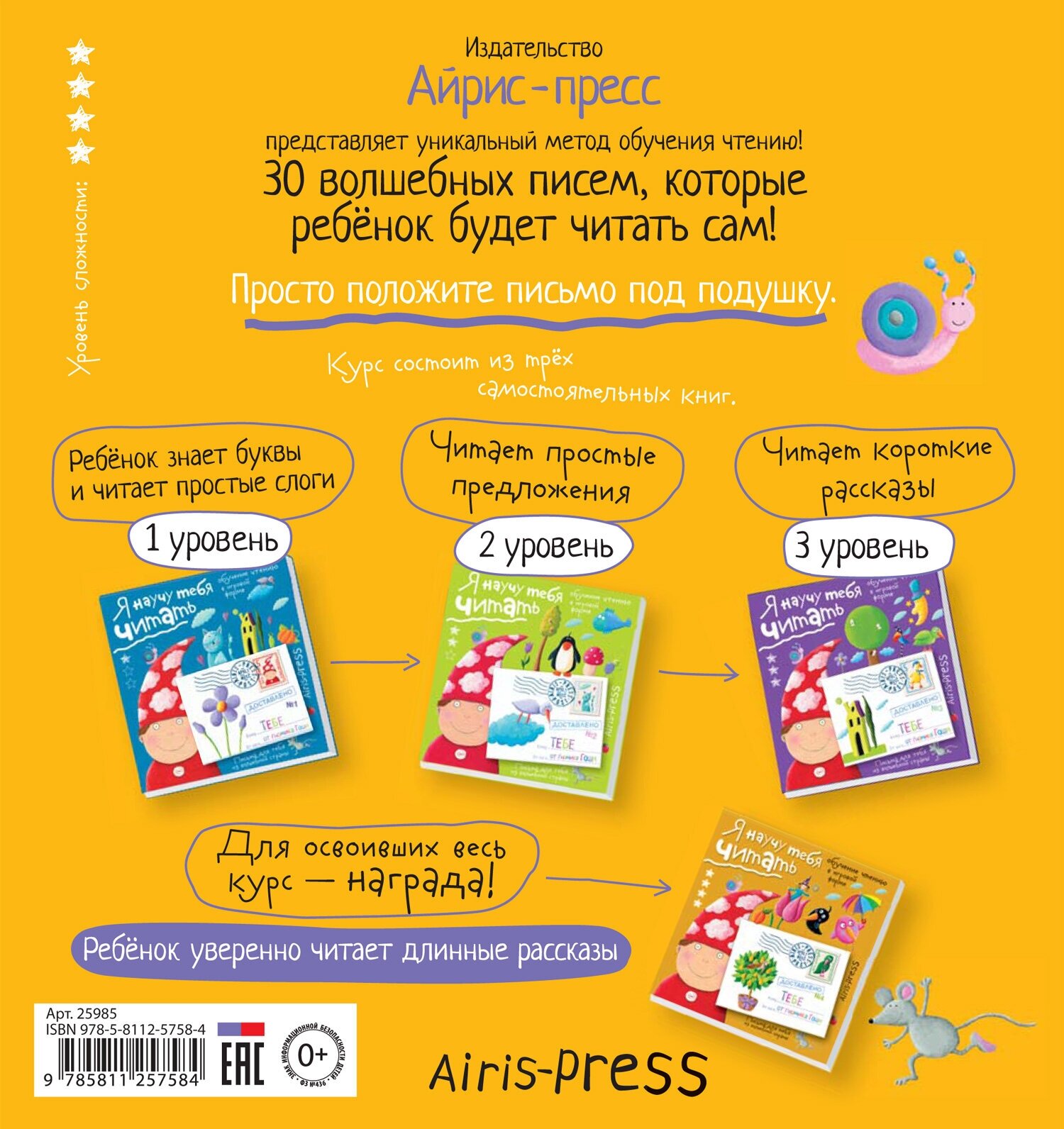 В блокноте представлен уникальный метод обучения чтению. Это 30 волшебных писем от гномика Гоши, адрессованных ребёнку. Ребёнок читатет их сам, без помощи взрослых. Родителям нужно просто каждый вечер незаметно класть готовое письмо под подушку спящего ребёнка. Уровень сложности рассчитан на детей, которые умеют читать сложные слова и простые предложения.
