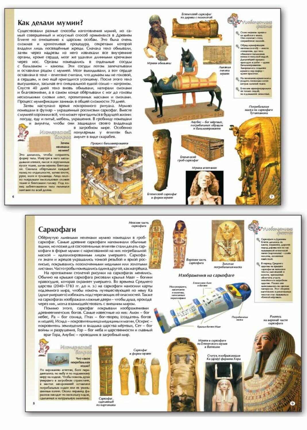Энциклопедия рассказывает юным читателям о том, для чего и как в древние времена делали мумии и строили пирамиды, о типах пирамид и связанных с ними легендах.