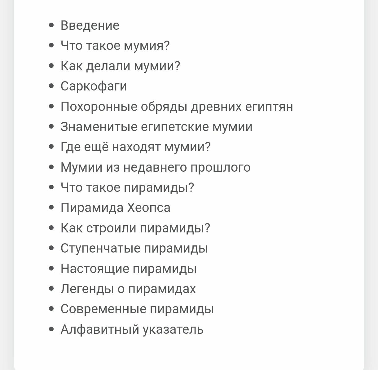 Дочка любит истории про мумий и Египет. От данной книжки не ждала ничего нового, но подача материала приятно удивила. На каждом развороте отдельно вынесенный вопрос, на который дается развернутый ответ. Как делали мумии, саркофаги, пирамиды, мистификации. Также же дается в сносках дополнительная интересная информация. Фотографии интересные и яркие. В целом книгу действительно можно назвать детской энциклопедией для маленьких ибо только знакомит с миров Египта. Для искушенного исследователя здесь не будет ничего нового.