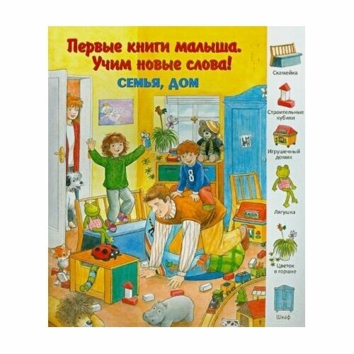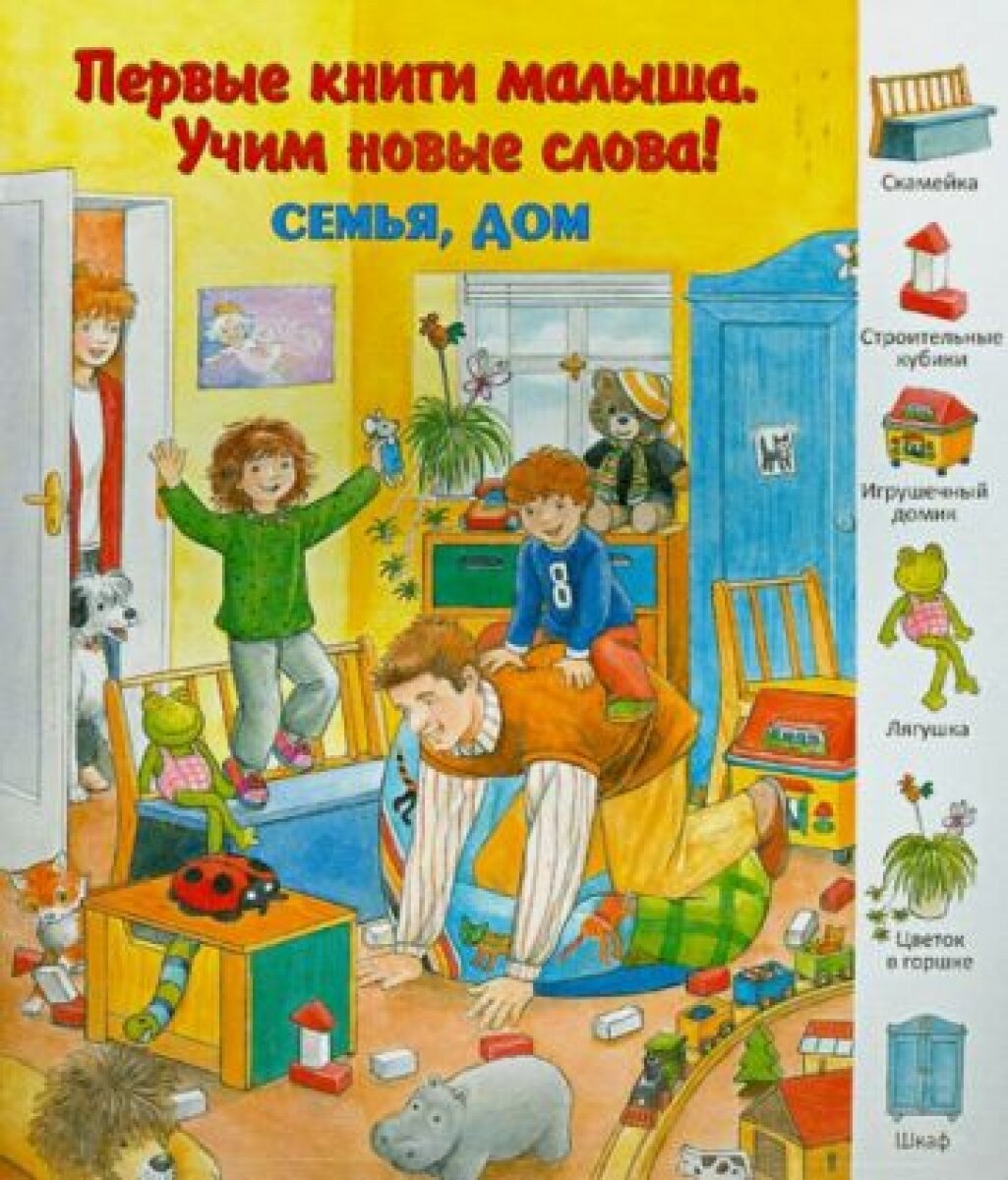 Вашему вниманию предлагается первая книга малыша. С её помощью малыш сможет узнать много новых слов о доме и семье.