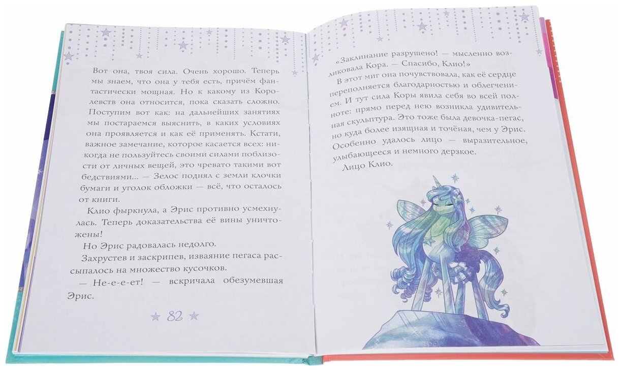 Далеко среди звезд сияет золотистым светом планета Аура. Населяют эту планету крылатые кони, пегасы. Среди них есть Мелоди — девочки-пегасы, которые рождаются с удивительным символом на крыльях и наделены скрытой до поры волшебной силой. В четырнадцать лет каждая Мелоди отправляется в легендарную школу Дестини, парящую среди облаков. Там девочки-пегасы учатся пользоваться волшебной силой и постигают своё предназначение… У первоклассниц наконец-то начинаются уроки по видам сил! Юным Мелоди предстоит разобраться в своих волшебных способностях. Девочки-пегасы расходятся по башням своих Королевств, ведь волшебная сила Мелоди всегда связана с её родиной. Кому-то предстоит создавать из воздуха снежинки, кому-то — благоухающие примулы. Только куда же податься Клио? Она-то не знает, где родилась и понятия не имеет, в чем её волшебный дар. Остаётся только ходить на уроки с одноклассницами из всех четырёх Королевств и ждать, когда же проявятся её загадочные способности…