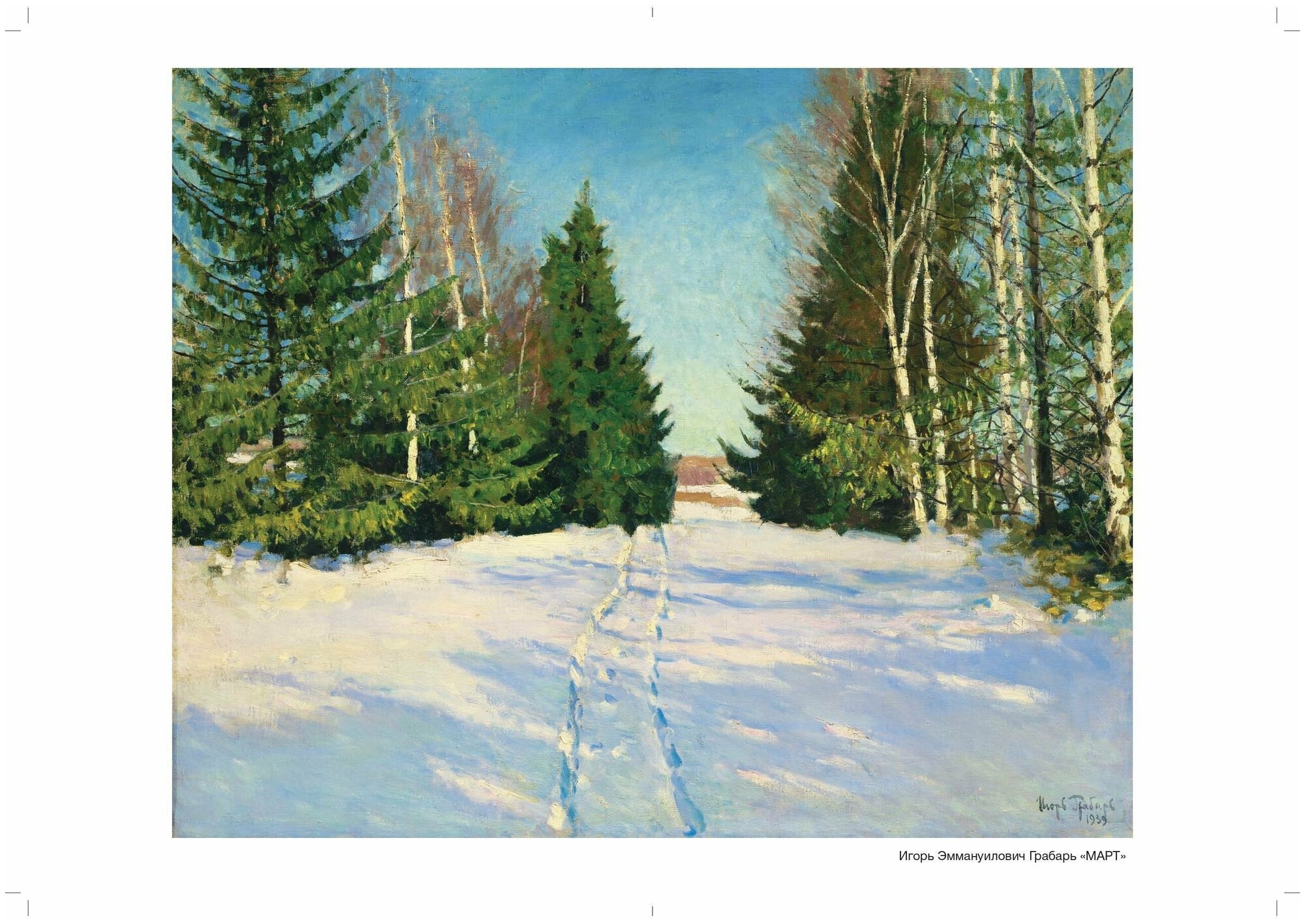 В пособии 8 репродукций русских художников. Формат репродукций А3, надо только достать аккуратно их из-под скрепки. Цикл занятий составляет три периода (с сентября по март) и по сути три времени года. Лето здесь не представлено, по содержанию это понятно. Но поскольку это 1 выпуск, предполагаю, что репродукции с летними пейзажами есть во втором выпуске. Хотя не понятно зачем на обложке расположены две репродукции на тему лета, которых в этой книге нет. Книга на скрепке, бумага чуть просвечивает. Иллюстрации напечатаны на глянцевой плотной бумаге, краски сочные, яркие. Репродукции можно использовать для работы с детьми старшего возраста.