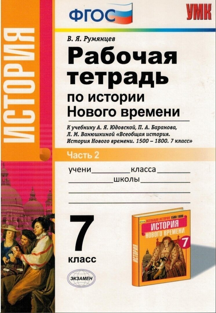 Рабочая тетрадь по истории Нового времени. 7 класс. В 2 частях. Часть 2. К учебнику А.Я. Юдовской П.А. Баранова Л.М. Ванюшкиной "Всеобщая история. История Нового времени. 1500-1800. 7 класс" (М. : П (Владимир Яковлевич Румянцев); Экзамен, 2017