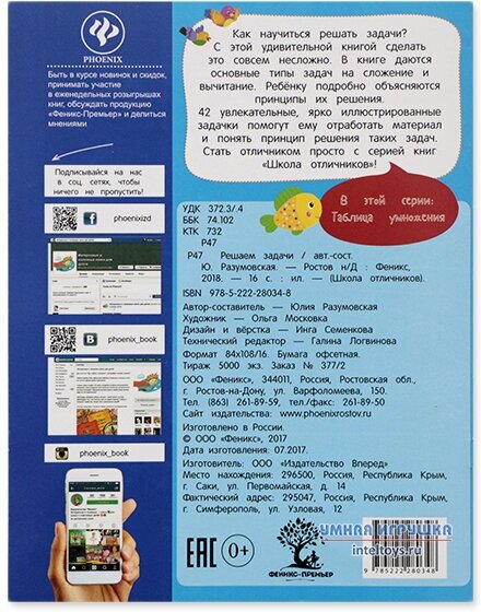 На сегодняшний день товар «Книга: Решаем задачи. 42 увлекательные задачи (Юлия Разумовская); Феникс, 2017» можно купить с кешбеком в 3 магазинах: book24, Читай-город, Буквоед