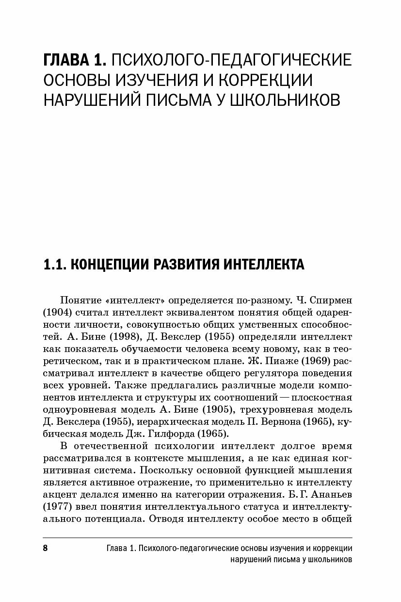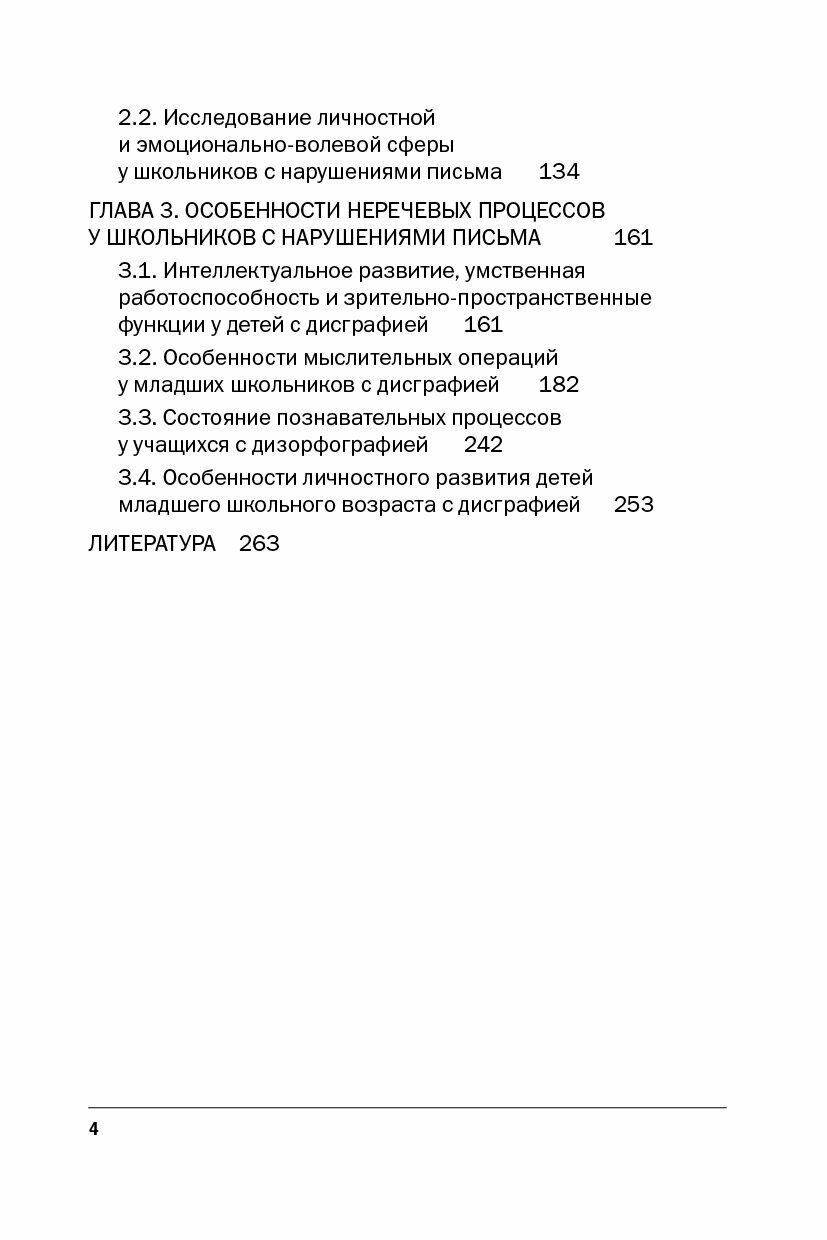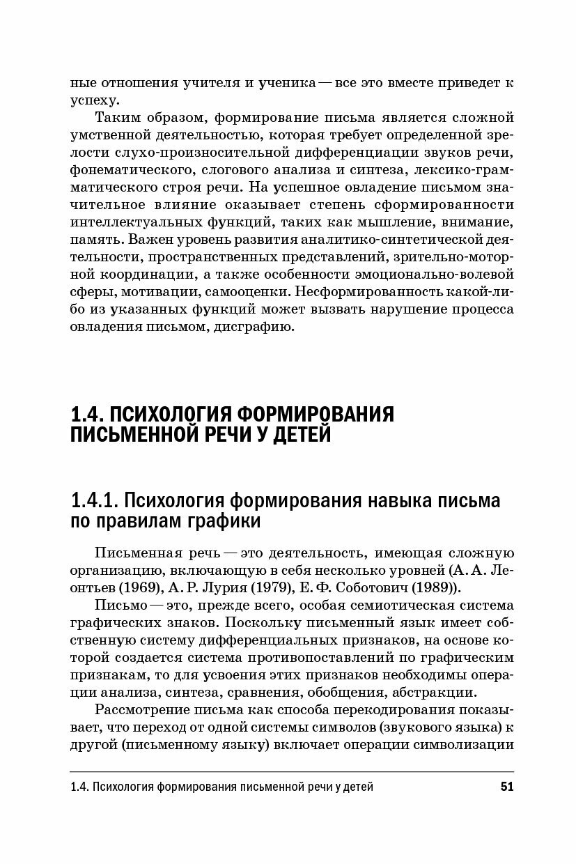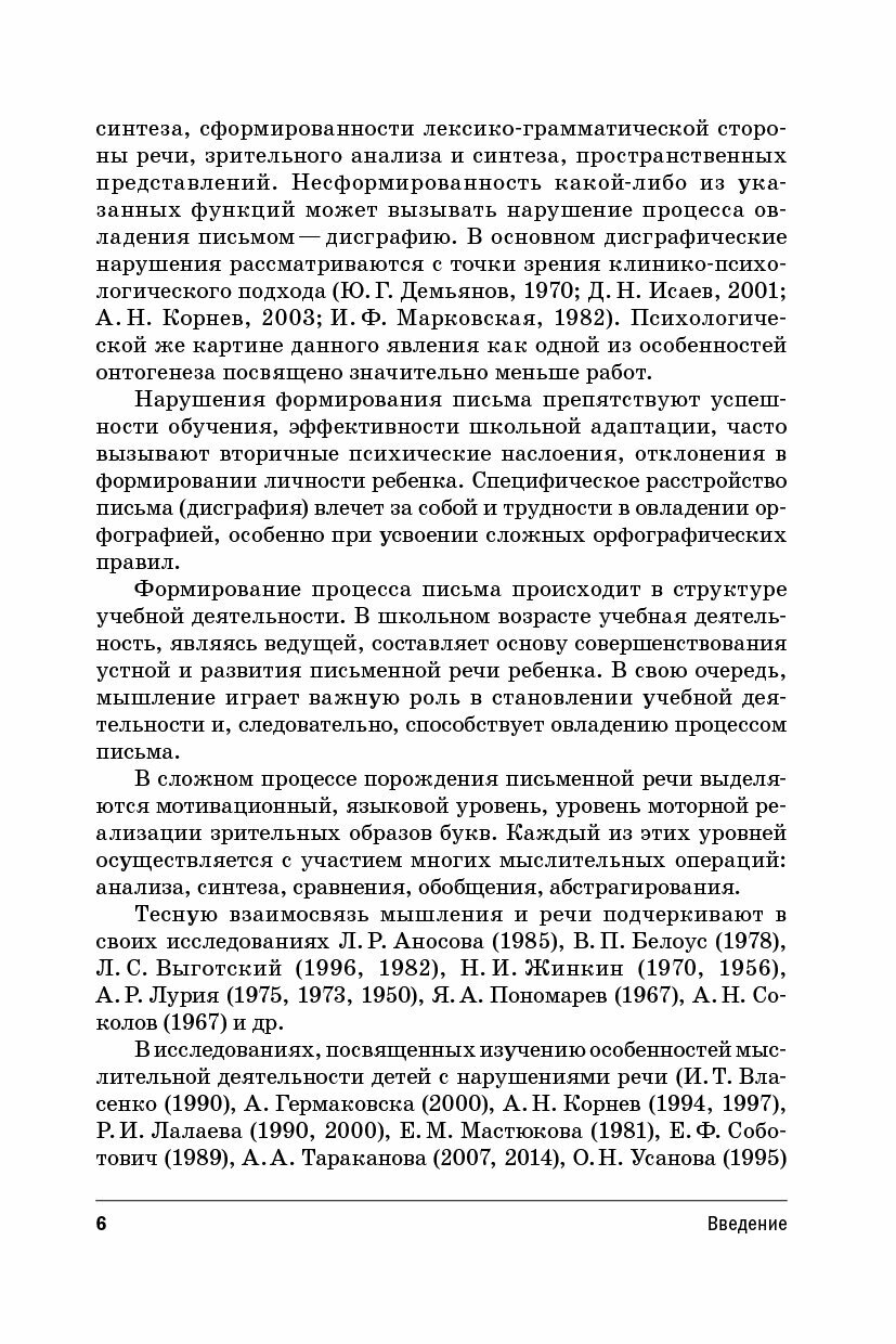 В книге рассматривается проблема формирования неречевых процессов у школьников с нарушениями письменной речи. Представлена методика изучения когнитивных составляющих процесса усвоения навыков письма по правилам графики и орфографии (операций мышления, личностной и эмоционально-волевой сферы) у учащихся общеобразовательной школы. Подробно проанализированы интеллектуальное развитие, умственная работоспособность и зрительно-пространственные функции у детей с дисграфией, особенности мыслительных операций, состояние познавательных процессов, особенности личностного развития.