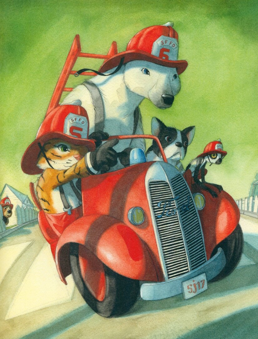 Маленький медвежонок мечтал стать пожарным. Он целыми днями ходил в красном костюме и блестящем шлеме и с восторгом смотрел на настоящих пожарных, когда они смело мчались навстречу опасности. Малышу хотелось вместе с ними сражаться с огнём, но никто не просил его о помощи. И вот он уговорил маму купить ему маленький, но самый настоящий пожарный автомобиль. Поначалу незадачливый герой натворил немало бед, но в конце концов ему удалось совершить настоящий подвиг... Эту смешную историю придумал и нарисовал известный бельгийский художник Квентин Гребан, замечательные рисунки которого хорошо знают и любят малыши во многих странах мира.