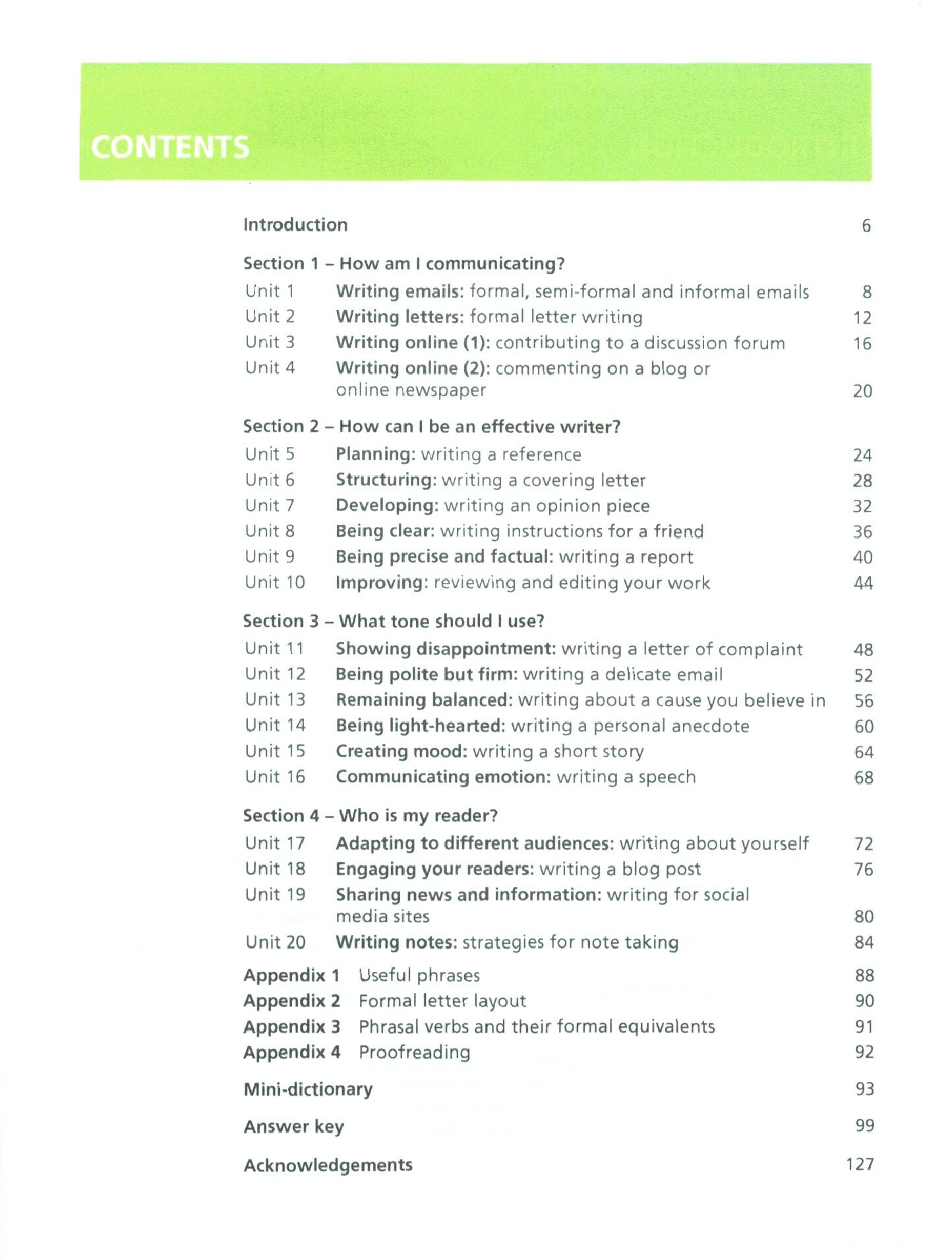 Real English for life beyond the classroom. Writing in English at advanced levels involves more than just words and grammar – it requires knowledge of the audience, context, environment and more. Being able to communicate in an appropriate way will help you to make a great impression when you write in English. Using real life examples and language Collins English for Life: Writing (B2+) will help you to sound natural, clear and confident when you write.> Study the language people really use when they are writing> Compare and contrast writing styles in lots of different environments> Useful tips to increase your understanding of tone, slang and social context. Includes practice of writing in the following contexts:• Writing a blog• Contributing to an online forum• Making a complaint• Writing notes. Plus each context helps to develop valuable writing skills including:• Structuring your thoughts• Being polite but firm• Being light-hearted• Editing your own work