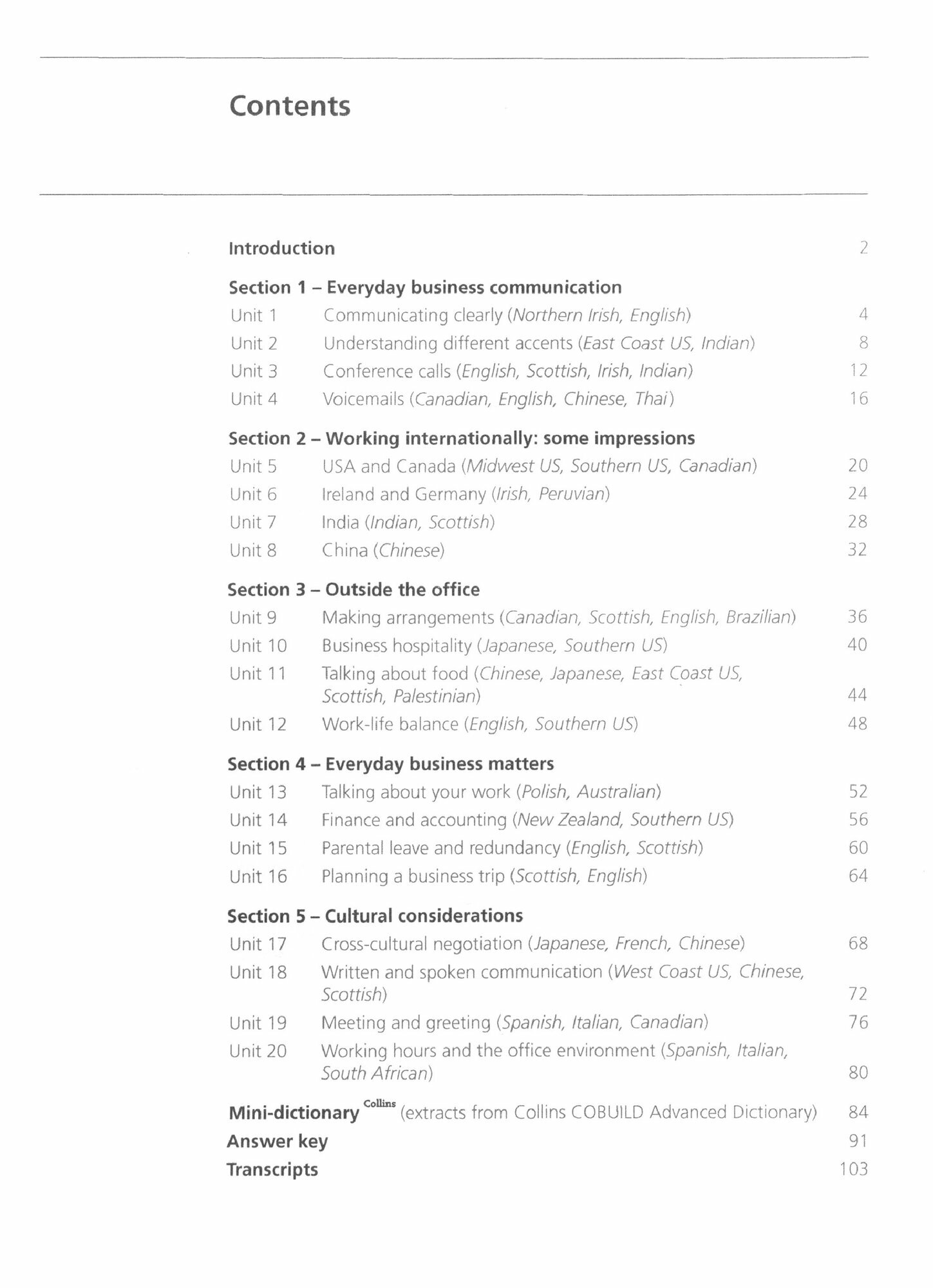 Understand what they're saying – however they say it.This completely innovative self-study book and audio CD set is the perfect way for busy executives to improve their English listening skills. It features real people talking about their work and their lives in a variety of native and non-native accents alongside exercises and learning material.Collins English for Business is a new series of self-study skills books which focus on the language you really need to do business in English – wherever you are in the world. Each title includes tips on how to communicate effectively and how to communicate inter-culturally. Other titles in the series: Speaking and Writing.• Powered by COBUILD – using the real language of business English• Listening contents:Twenty 4-page units cover the key areas, such as Small Talk, Working in English Globally, Telephoning and Teleconferencing.• Each unit contains:- Exercises based on authentic audio recording- Grammar tips- Key phrases• Audio CD containing 78 minutes of authentic recordings