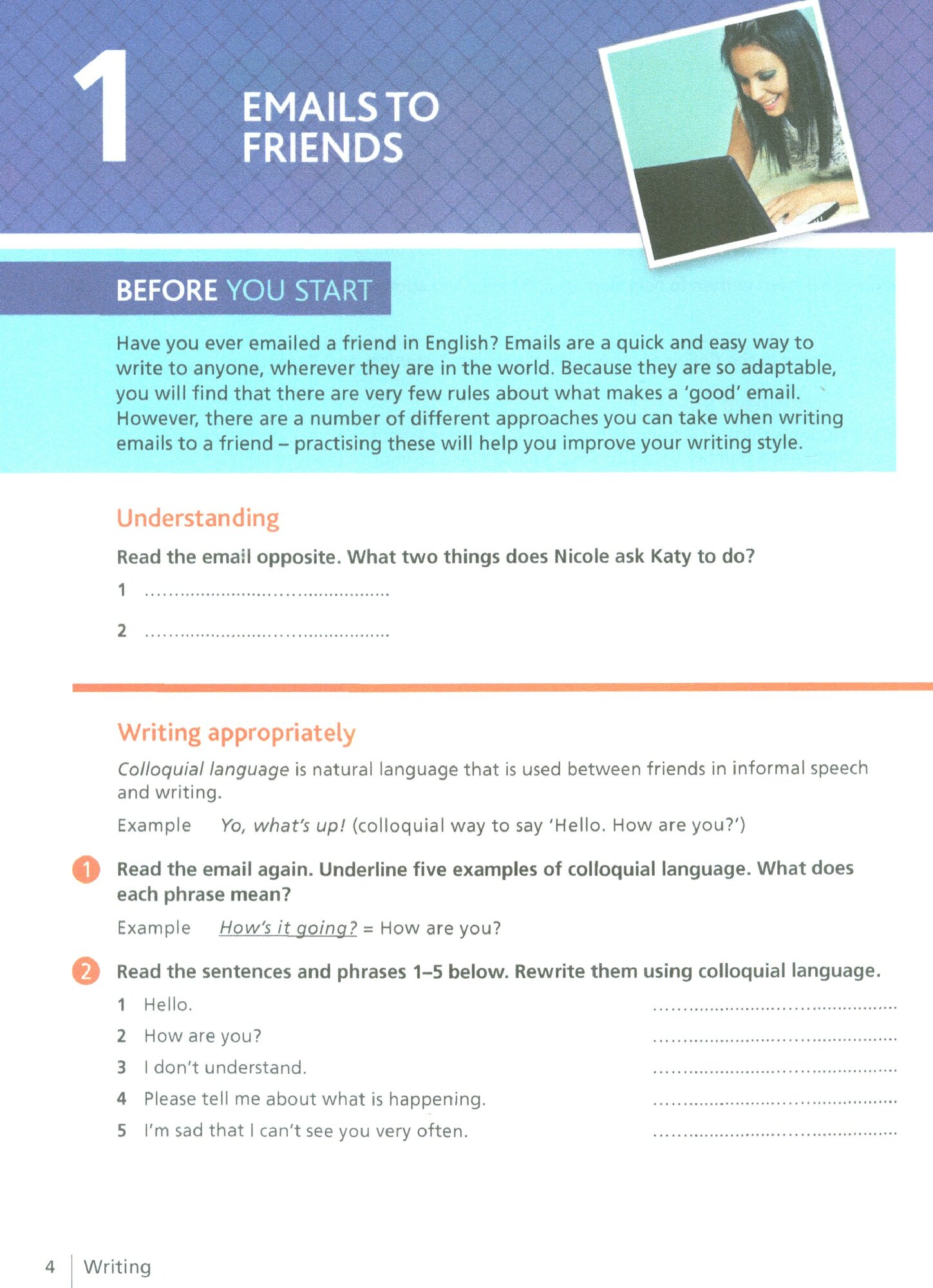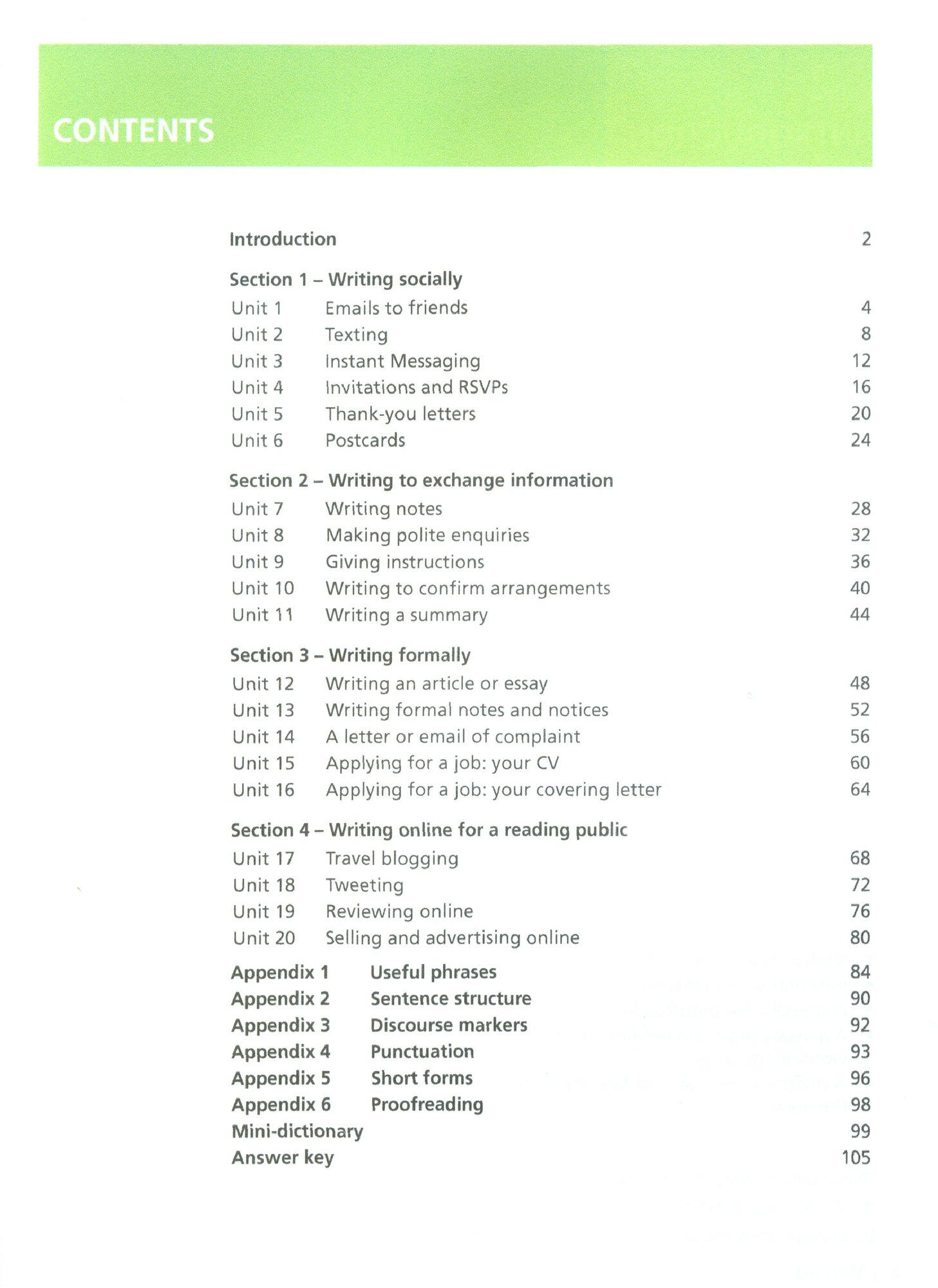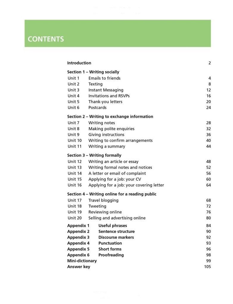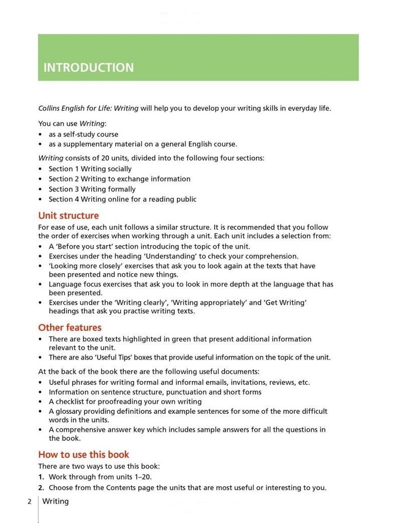 Are you comfortable writing English in the classroom but nervous about writing in the real world?To write confidently in English you need to practise different styles of written English.Collins Writing helps you recognize different styles and choose the right language to get your message across. The twenty units focus on a wide variety of texts so that you can feel just as comfortable writing a postcard or using social media online.Learn to write as fluently as you speak, use the right tone, and use persuasive language to get the response you need.Featured writing styles include:• online reviews• tweets• instant messaging• thank you letters• emails• job applications.Collins Writing is part of the new English for Life series and uses authentic material from the Collins Corpus, the world’s largest database of the English language. It is suitable for self-study and classroom use, and can help towards Cambridge FCE preparation. Suitable for Intermediate learners of English (CEF level B1+).