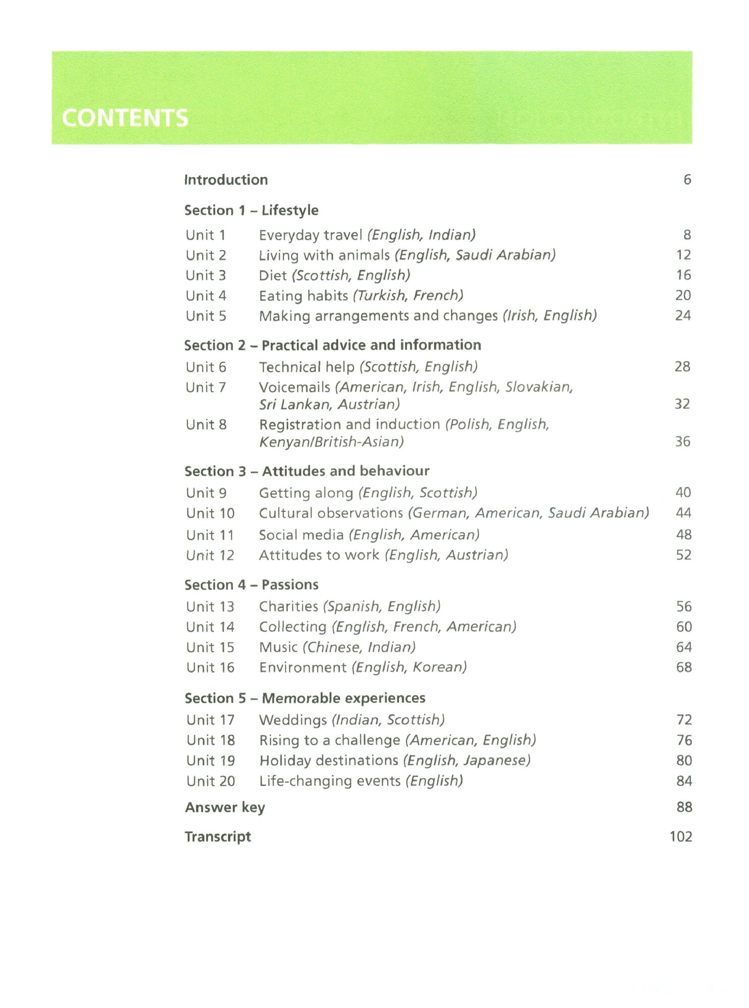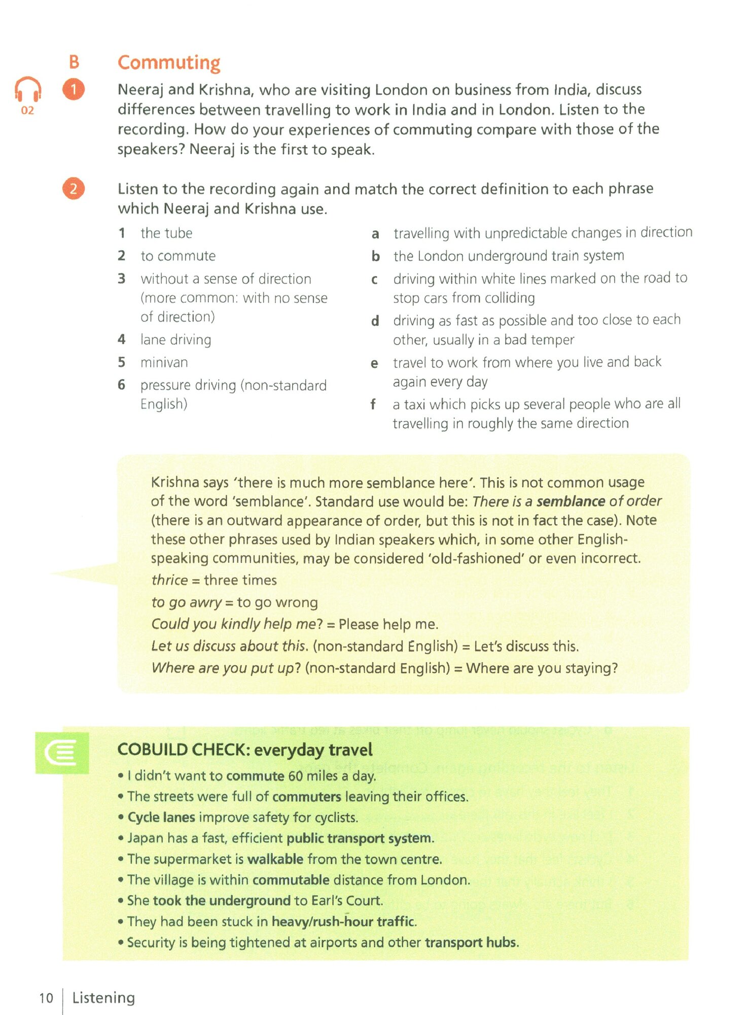 Real English for life beyond the classroom. English in the real world is constantly evolving, and learners need to move with it. But sometimes the English you can learn from your coursebook just isn’t enough for real life. Being able to understand English as it is really spoken will give you the confidence to succeed in any English-speaking environment. Using a wide range of authentic, unscripted recordings of everyday people from around the world, Collins Listening (B2+) will help you to feel confident and prepared for anything.> Hear the language people really use when they are speaking> CD with over 40 authentic recordings in a wide variety of scenarios> Useful tips to increase your understanding of tone, slang and context. Units are divided into the following themes:• Lifestyle• Practical advice and information• Attitudes and behaviour• Passions• Memorable experiences. Each of these areas includes analysis of high-level, natural recordings between one, two and three people. Some conversations took place face-to-face while others were over the phone. All are 100% unscripted and unedited and do not use actors.