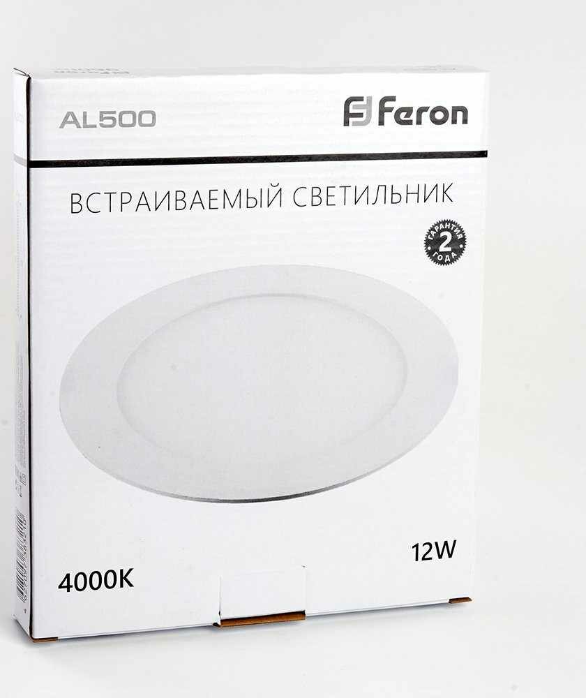 Светильник встраиваемый светодиодный, ультратонкий (ДВО) FERON AL500, 12W 4000К (белый), 175-265V, 960Lm, IP40, угол рассеивания 120°, цвет белый, корпус алюминий, рассеиватель матовый акриловый полимер, 170*170*18 мм, монтажн.отв. 155*155 мм.. Встраиваемые светодиодные светильники AL500 TM Feron артикул предназначены для освещения помещений общественного пользования и коммерческой недвижимости. Светильники легко монтируются и не требуют дополнительных затрат на дальнейшее обслуживание. Алюминиевый корпус обеспечивает хороший теплоотвод, что влияет на долгий срок службы светодиодов. Использование светильника поможет значительно сократить эксплуатационные затраты не только за счёт экономии электроэнергии, но и за счёт продолжительного срока службы. Особенности: - Не дает засветов в запотолочное пространство - Энергоэффективный - Прочный и тонкий корпус - Простой и быстрый монтаж - Равномерный яркий свет - Отсутствие пульсации - Гарантия 2 годa