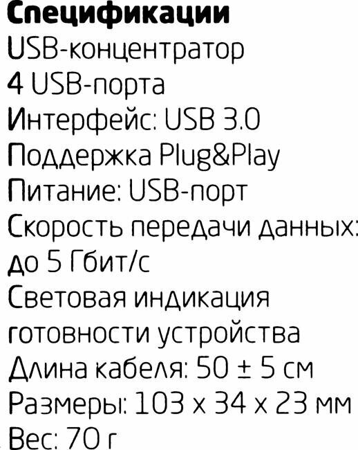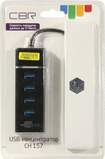 | Описание | Концентратор CBR CH 157, 4 порта, USB 3.0 Поддержка Plug&Play. Длина провода 50+-3см. LED-подсветка/ |