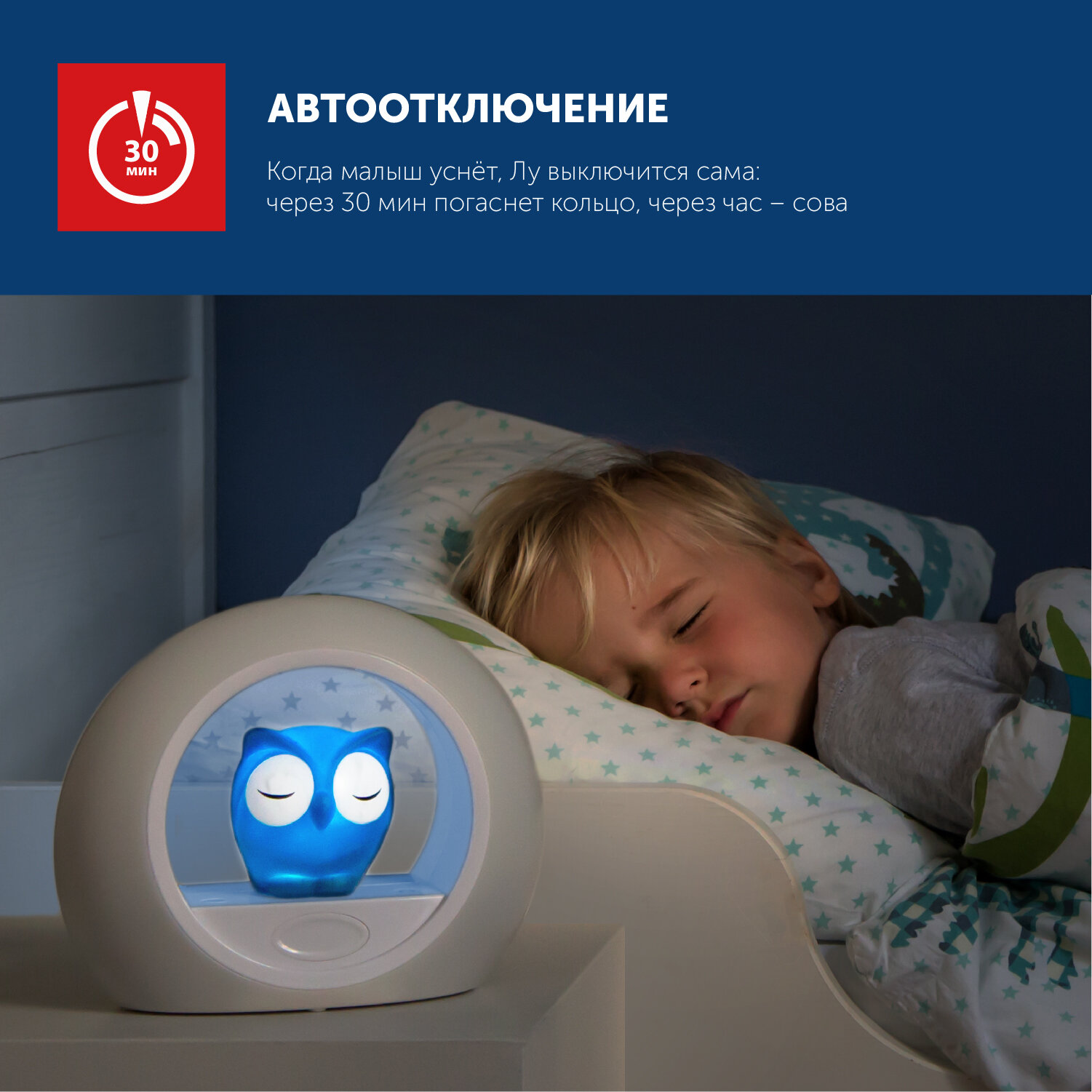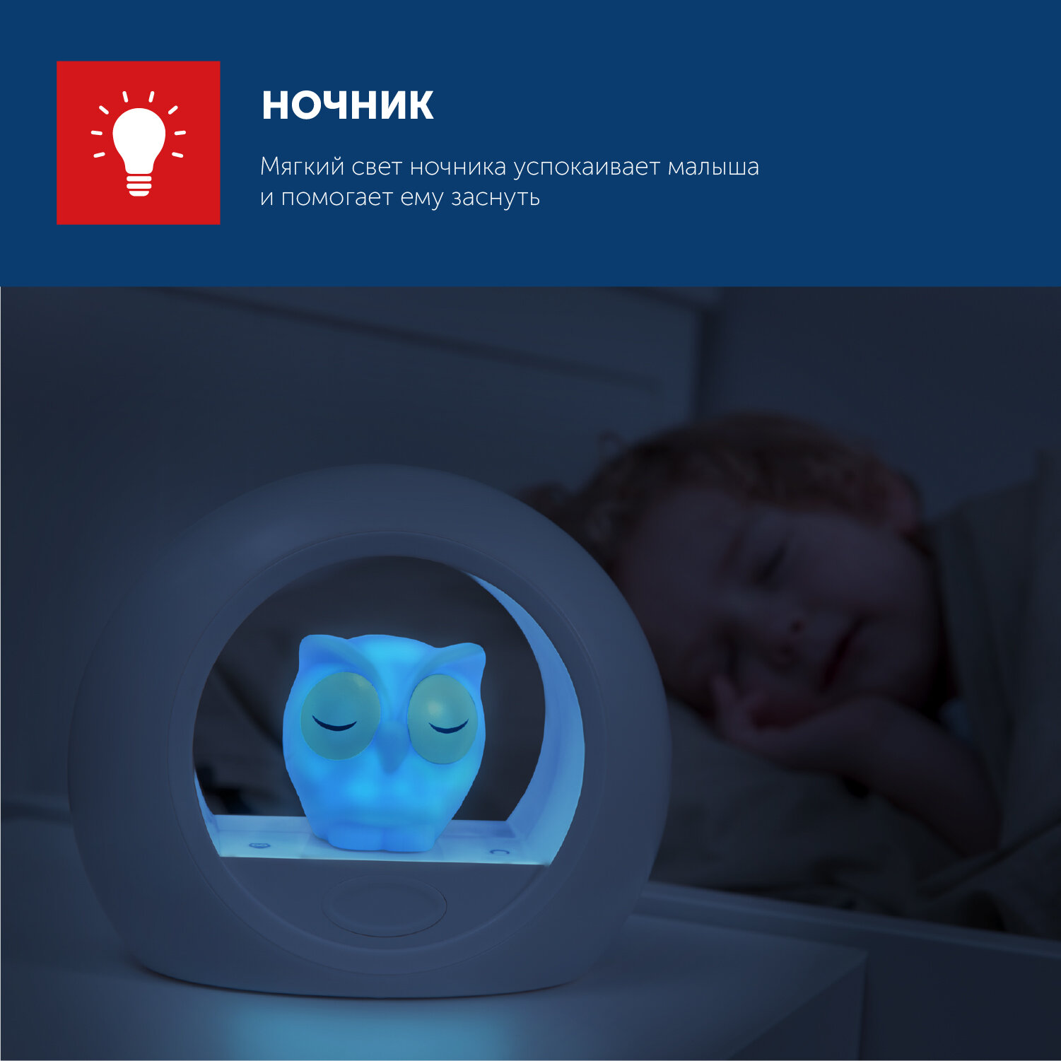 Светильник, включающийся от звука голоса, который помогает успокоить вашего малыша. Загорается, если ваш ребёнок проснулся. Если ваш ребёнок проснулся ночью, то активируется датчик включения звука, и сенсор загорается мягким светом. Таймер автоматического отключения. Установите таймер, чтобы устройство автоматически выключилось после того, как ваш малыш заснёт. 2 цвета в одном. Сова и внешнее кольцо могут быть включены по отдельности. Чтобы свет был более ярким используйте их вместе, для более мягкого свечения включите что-то одно. Настройка яркости. Вы можете настроить яркость света как самой совы, так и внешнего кольца. Выбирайте яркий, мягкий или рассеянный свет