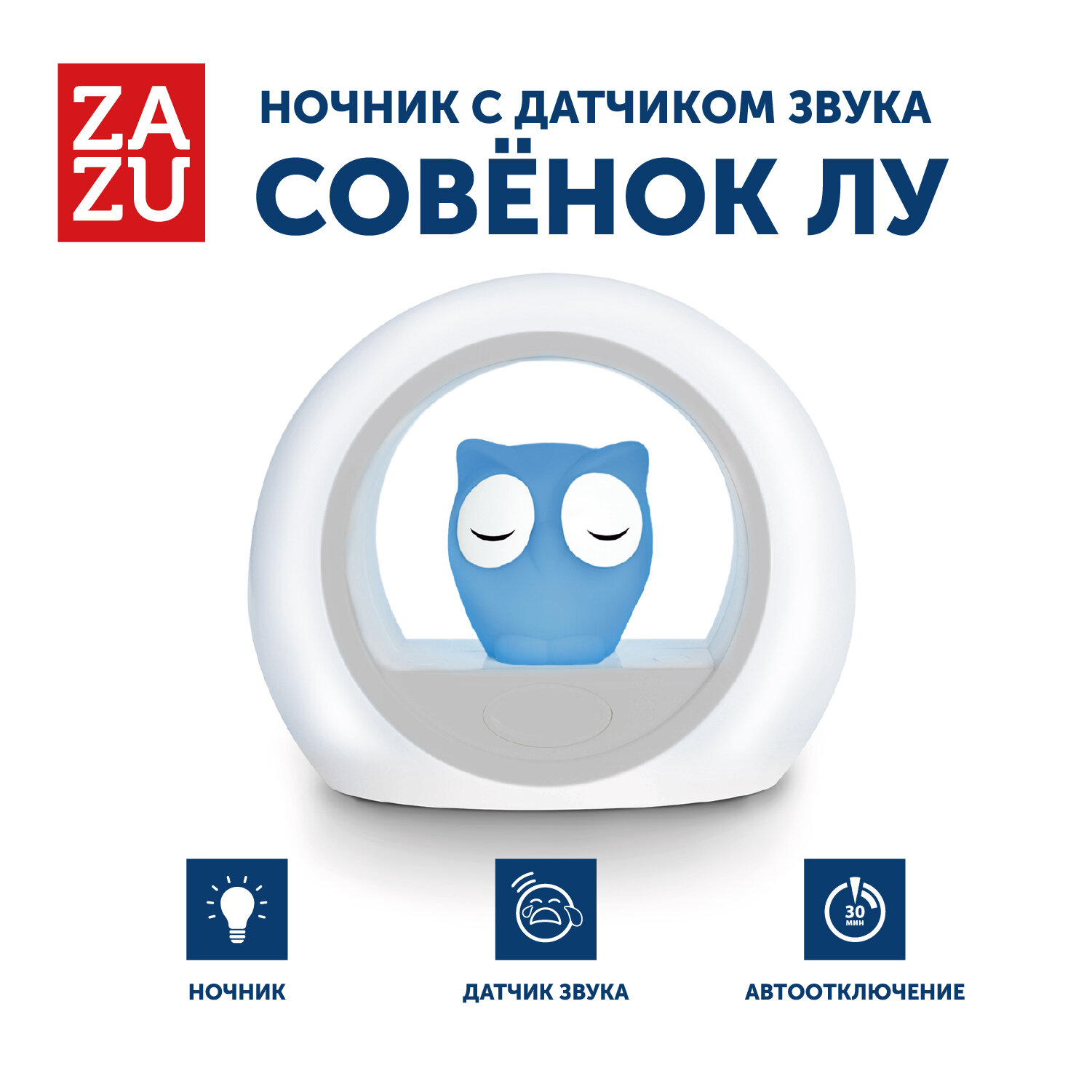Ночник с датчиком звука Zazu Сова Лу синий (ZA-LOU-02)