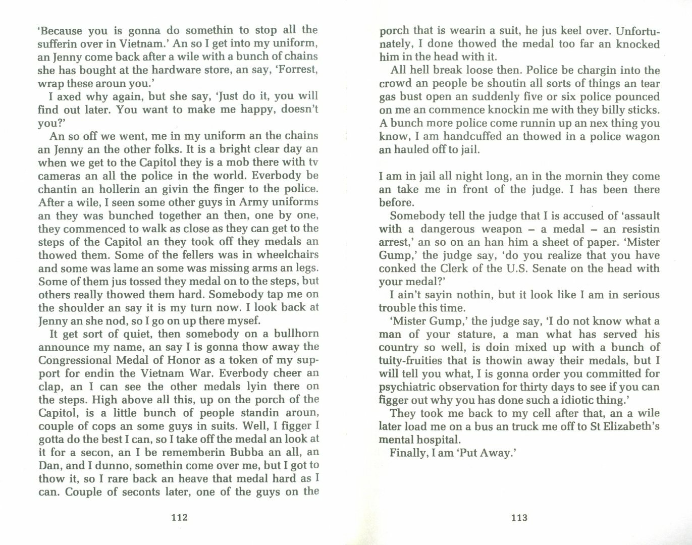 Laugh, cry, stand up and cheer: "Forrest Gump" is everyman's story, everyman's dream. A wonderfully warm, savagely barbed, and hilariously funny 'tale told by an idiot', from the razor-sharp pen of a contemporary wizard.