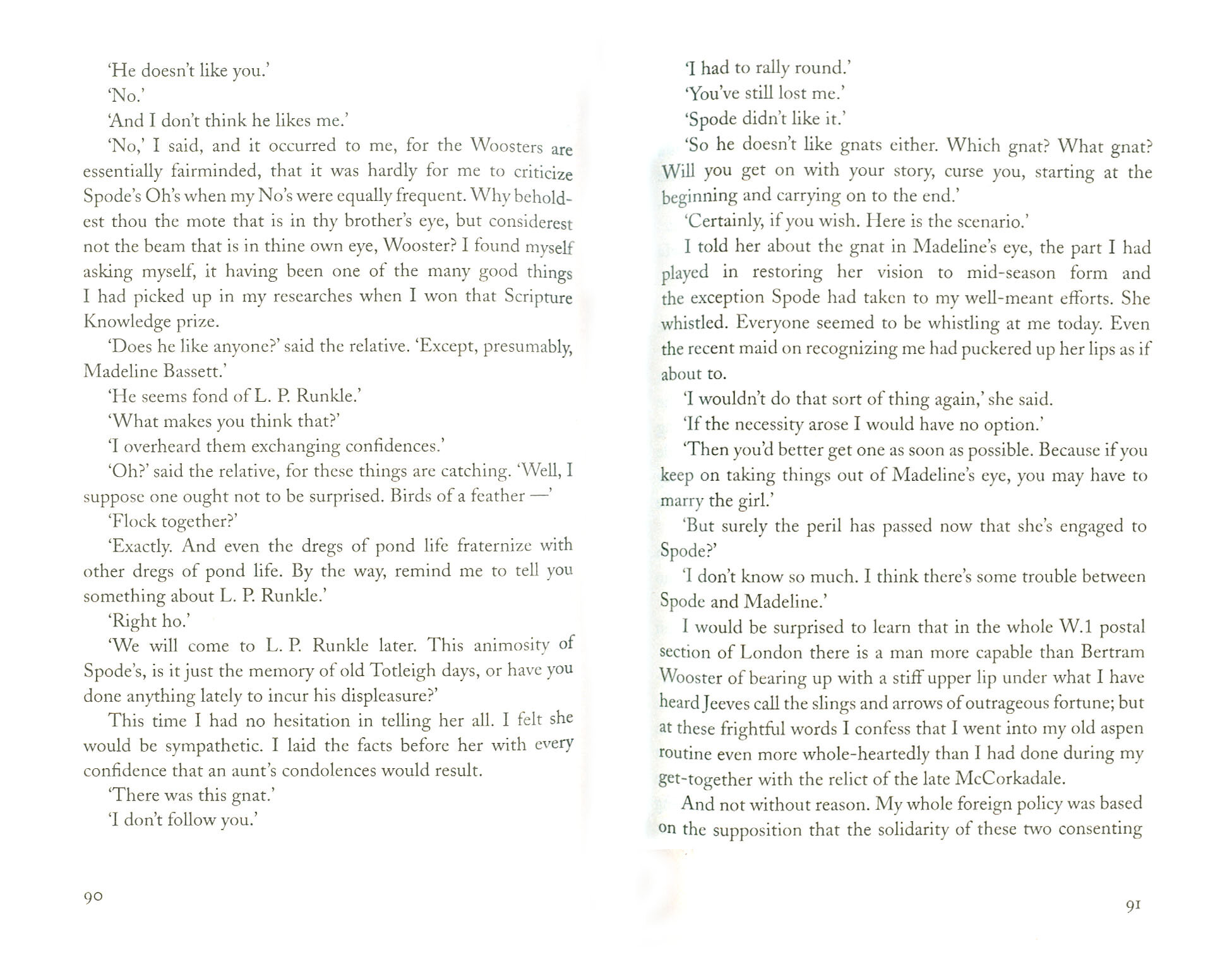 Just as Bertie Wooster is a member of the Drones Club, Jeeves has a club of his own, the Junior Ganymede, exclusively for butlers and gentlemen's gentlemen. In its inner sanctum is kept the Book of Revelations, where the less than perfect habits of their employers are lovingly recorded. The book is, of course, pure dynamite. So what happens when it disappears into potentially hostile hands?