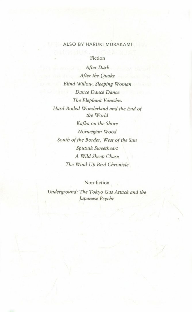 In 1982, having sold his jazz bar to devote himself to writing, Murakami began running to keep fit. A year later, he'd completed a solo course from Athens to Marathon, and now, after dozens of such races, not to mention triathlons and a slew of critically acclaimed books, he reflects upon the influence the sport has had on his life and on his writing. Equal parts travelogue, training log, and reminiscence, this revealing memoir covers his four-month preparation for the 2005 New York City Marathon and settings ranging from Tokyo's Jingu Gaien gardens, where he once shared the course with an Olympian, to the Charles River in Boston among young women who outpace him. Through this marvellous lens of sport emerges a cornucopia of memories and insights: the eureka moment when he decided to become a writer, his greatest triumphs and disappointments, his passion for vintage LPs, and the experience, after fifty, of seeing his race times improve and then fall back. By turns funny and sobering, playful and philosophical.