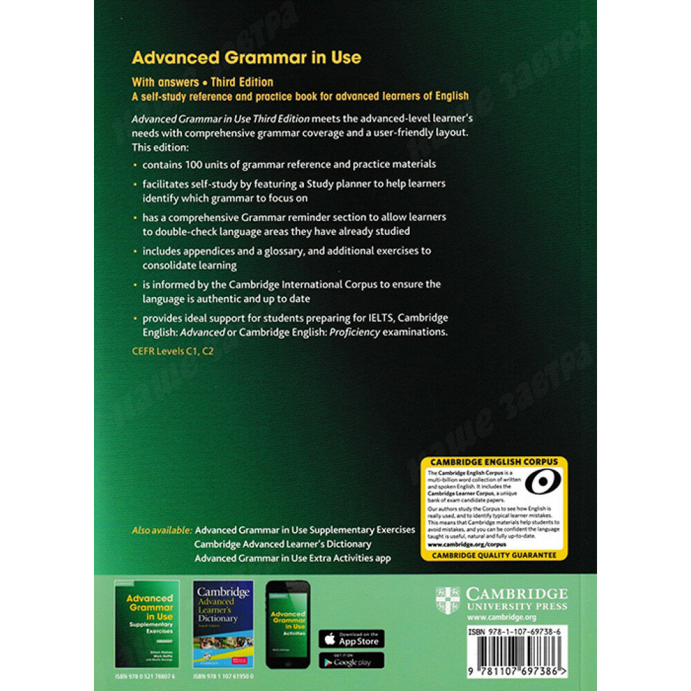 Advanced Grammar in Use, 3 Edition Book with answers. Advanced Grammar in Use - учебник грамматики для продвинутых студентов, продолжающий линейку пособий "Grammar in Use". В нее, помимо этой книги, входят красный и синий Мерфи, популярные учебники грамматики. Advanced Grammar in Use написан для студентов продвинутого уровня. Автор рекомендует использовать Advanced Grammar in Use для самостоятельного обучения.