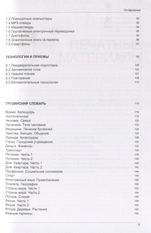 Вторая часть книги - тематический русско-грузинский словарь. Словарь содержит 1500 наиболее употребляемых слов и может служить базой для создания первичного словарного запаса.