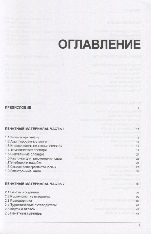 Печатные материалы: книги в оригинале, книги адаптированные, печатные словари, тематические словари, визуальные словари, карточки для запоминания слов, учебники и пособия, электронные книги, газеты и журналы, распечатки из интернета, разговорники, туристические путеводители, карты и атласы, печатные сувениры