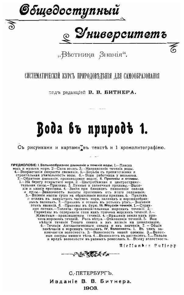 Вода в природе. Систематический курс природоведения для самообразования (Битнер Вильгельм Вильгельмович); Книга по Требованию, 1903