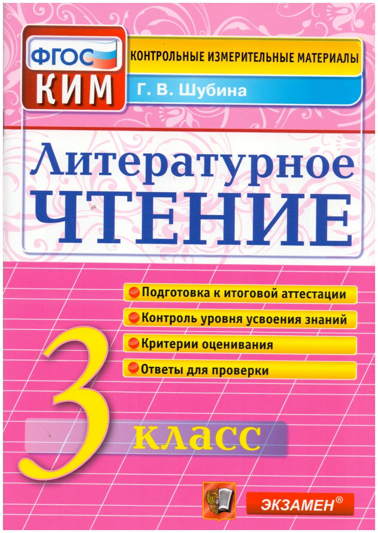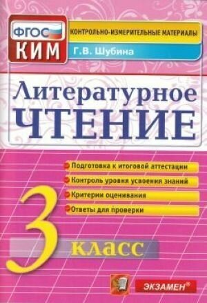 Литературное чтение: 3 класс: контрольные измерительные материалы (Шубина Галина Викторовна); Экзамен, 2019