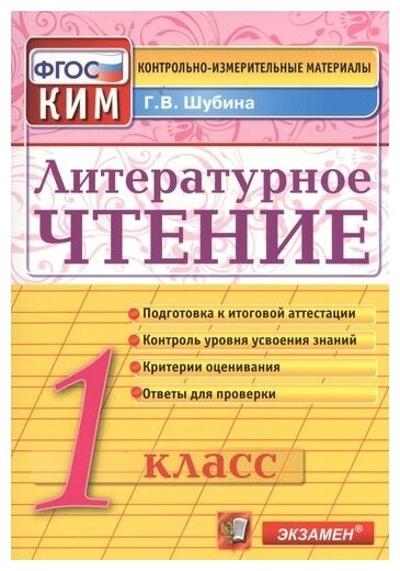Литературное чтение. 1 класс: контрольно-измерительные материалы (Шубина Г.В.); Экзамен, 2016