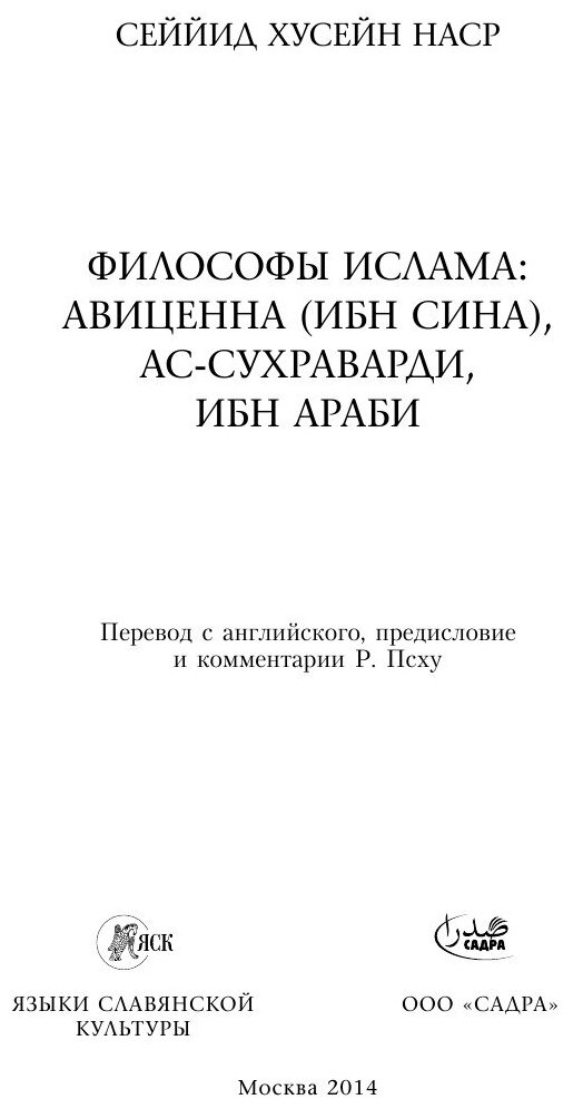 Философы Ислама: Авиценна (Ибн Сина) ас-Сухраварди Ибн Араби (Сеййид Хусейн Наср); Языки Славянской Культуры, 2014