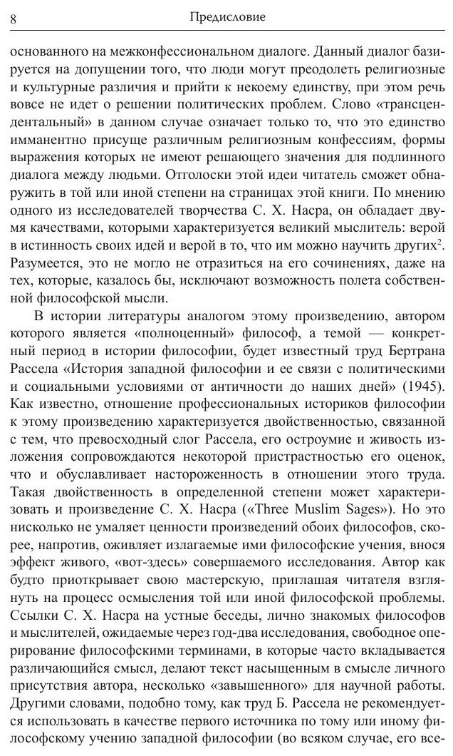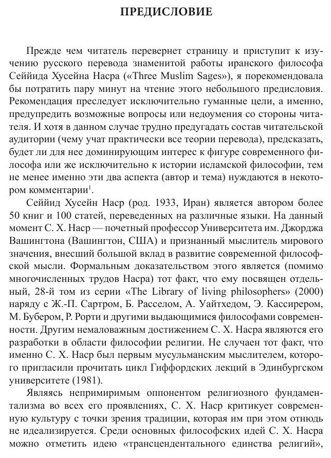 Книга известного современного мусульманского философа С.Х. Насра посвящена трем крупнейшим фигурам в истории исламской мысли — Ибн Сине (Авиценне), ас-Сухраварди и Ибн Араби. Автор обращается к творчеству этих выдающихся мыслителей, чтобы раскрыть основные положения фальсафы, ишракизма и суфизма — влиятельных направлений арабо-мусульманской философии эпохи классического ислама.Книга рассчитана на широкий круг читателей, интересующихся историей интеллектуальной мысли исламского мира.