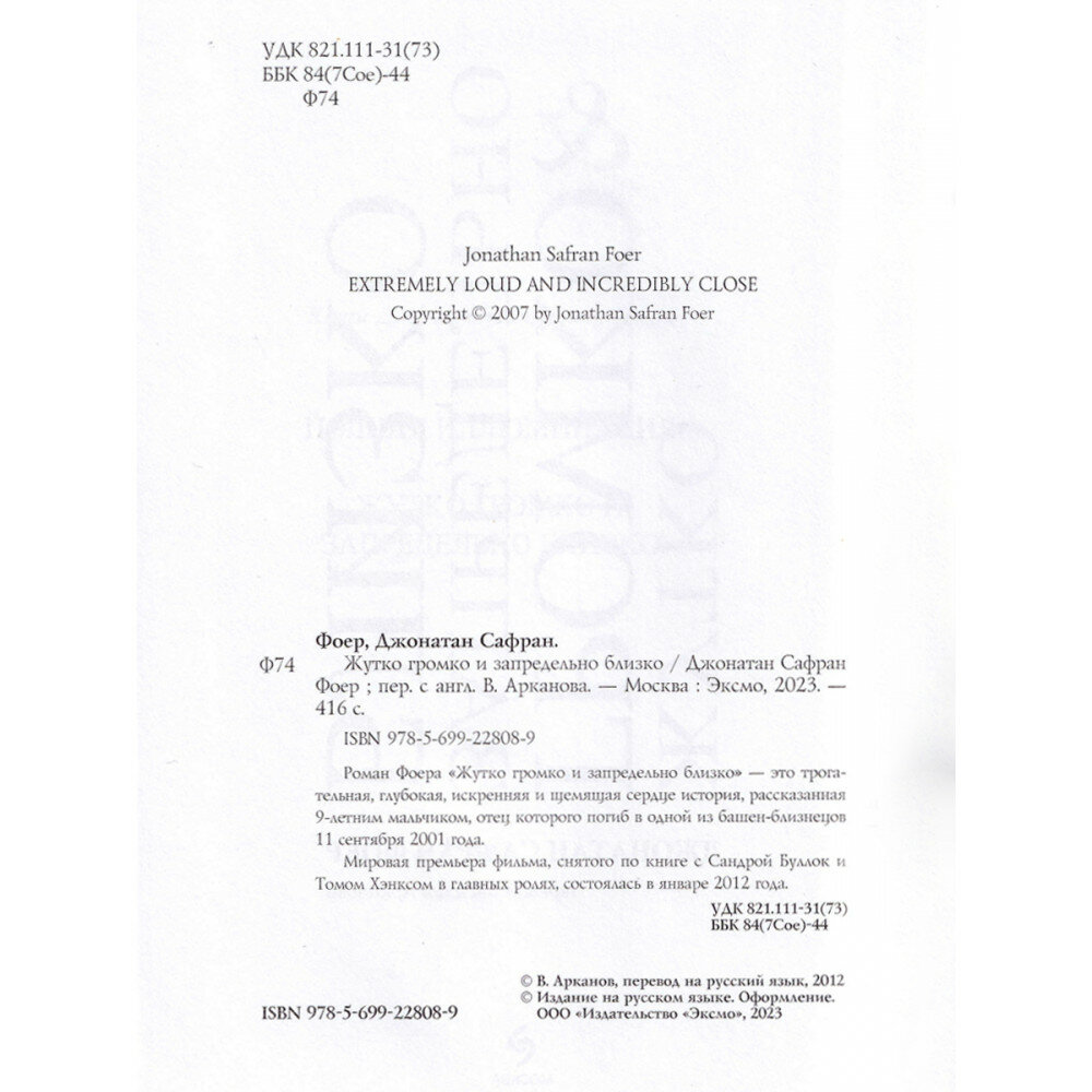 Жутко громко и запредельно близко (Джонатан Сафран Фоер); Эксмо, Редакция 1, 2018
