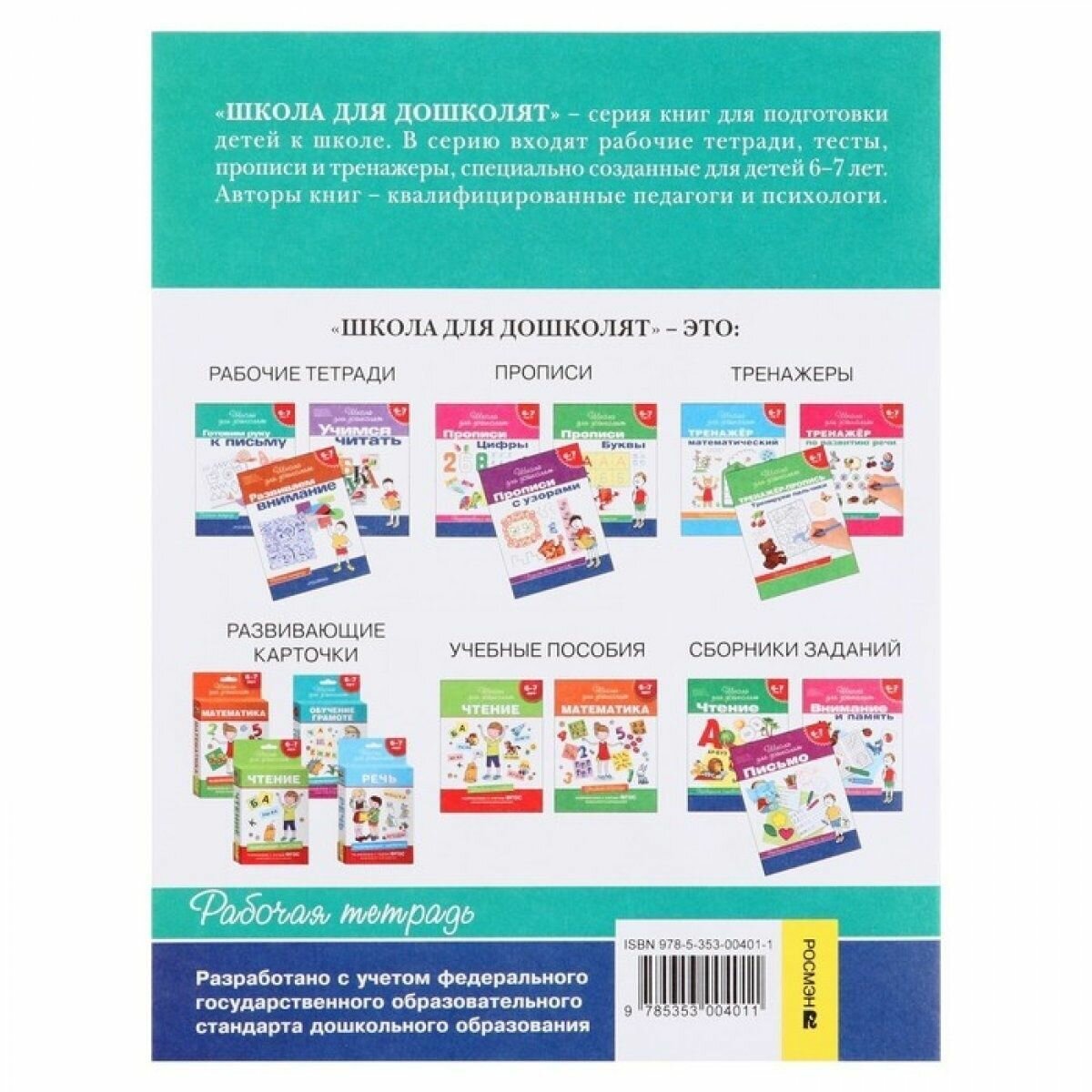 Рабочая тетрадь для дошкольников серии "Школа для дошколят". Серия популярна в дошкольных общеобразовательных учреждениях, на курсах подготовки к школе и в начальных классах. Авторы книг - квалифицированные педагоги и детские психологи.