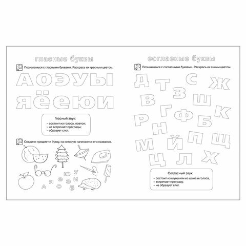 .Рабочая тетрадь построена в игровой форме и обязательно вызовет у ребенка интерес к чтению. Азбука с картинками в начале книжки поможет малышу вспомнить все буквы родного языка. Пусть ребенок раскрашивает картинки. Это не только развлечет его, но и поможет в развитии тонкой моторики и координации движений. Обратите внимание на то, чтобы ребенок раскрашивал аккуратно, не выходя за контуры рисунка.