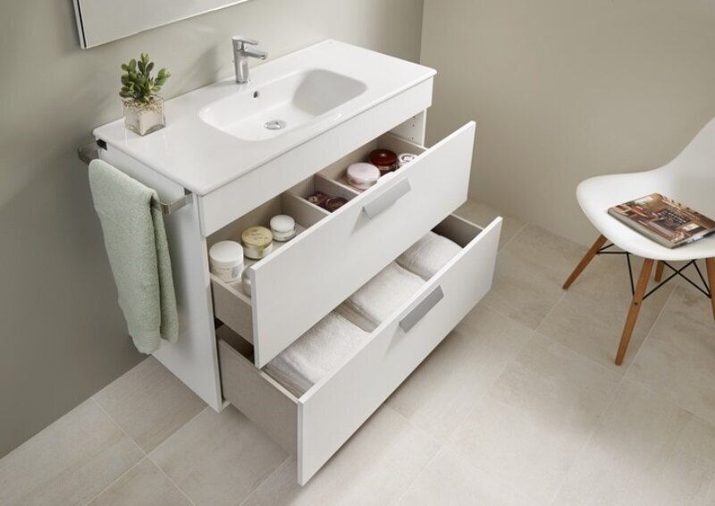 Roca ZRU9302708 ZRU9302708 модуль Тумба Roca для умывальника высотой 60 см оборудована 2 ножками, представлена в стиле модерн. Модель предназначена для грамотного обустройства полезного пространства даже самой маленькой ванной комнаты. Изделие изготовлено из качественного влагостойкого ДСП, фасад покрыт МДФ. Комплектуется 2 выдвижными вместительными ящиками.