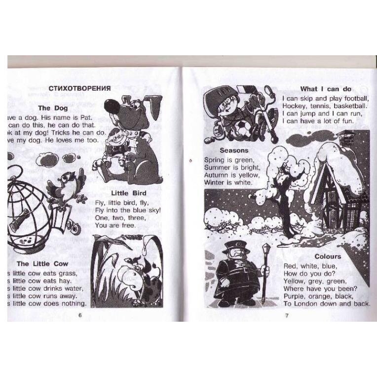 Написано - что для детей 6-11 лет. Своего рода рабочая тетрадь с очень большим объемом материала. Много легких стихов. Ести сложные с переводом. Поговорки, загадки, упражнения, типа "найди рифмующиеся слова". Немного просвечивающаяся бумага и черно-белые рисунки - остальное на очень высоком уровне. Для 1 года изучения наверно рановато, а со второго - идеально.