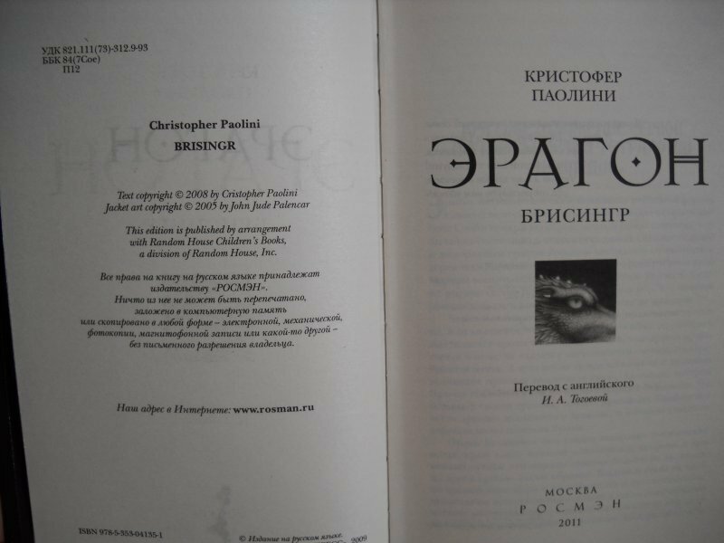 Книга: Эрагон. Брисингр (Кристофер Паолини); РОСМЭН, 2008