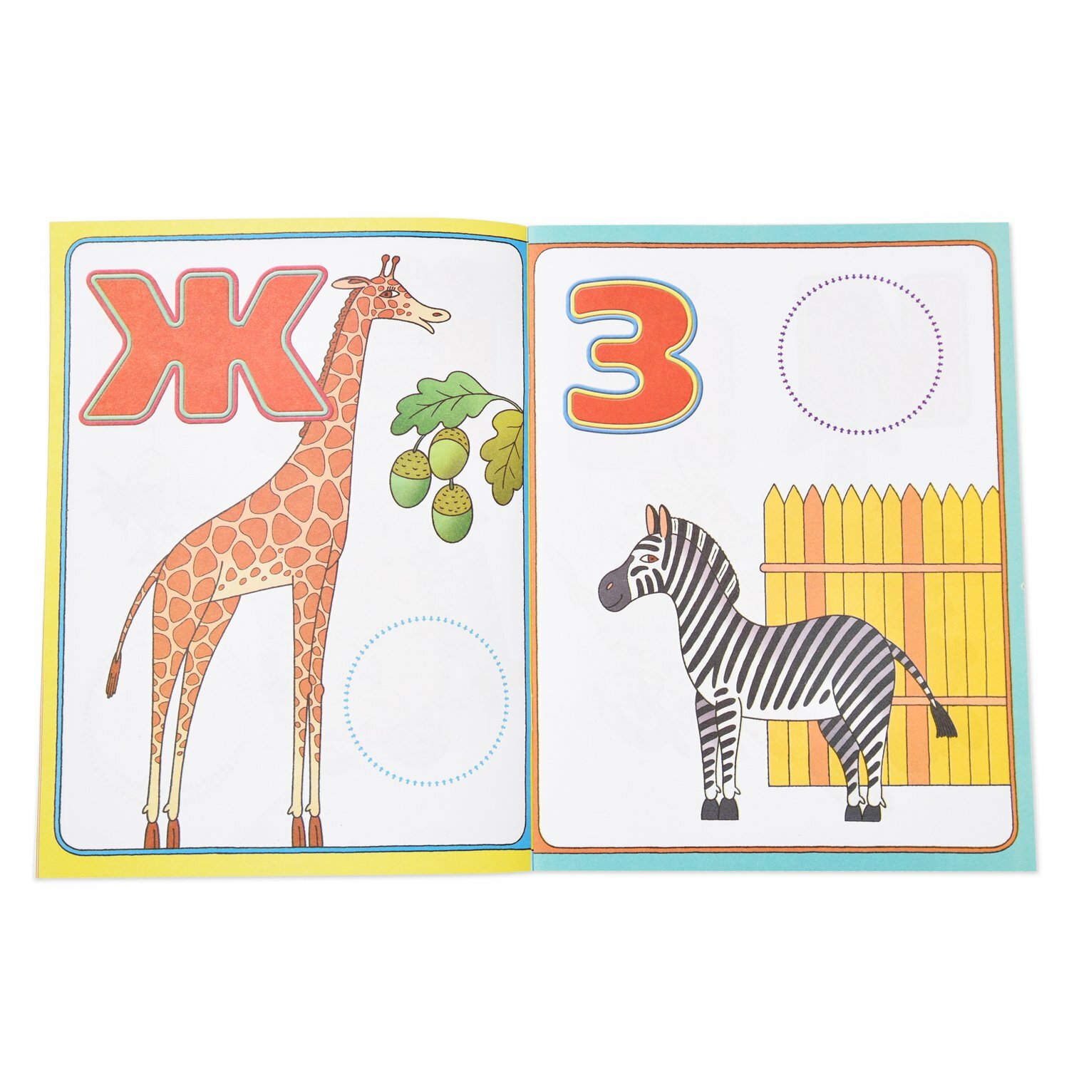 Книга с яркими, красочными картинками и буквами. Дает возможность изучать буквы в игровой форме. На страницах рядом с буквами нарисованы предметы, названия которых начинаются на эти буквы. И кроме того среди наклеек надо найти картинку на изучаемую букву и наклеить ее на страницу с буквой в круг с пунктирными линиями.
