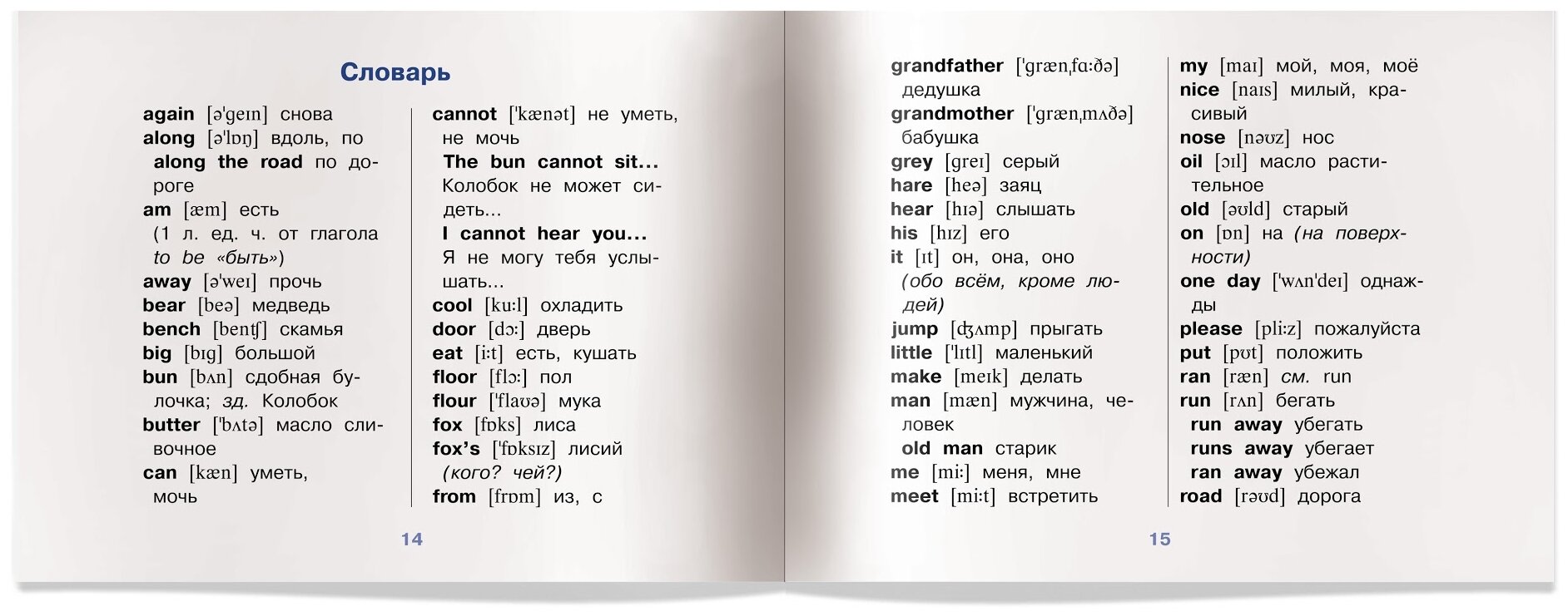 .Русская народная сказка пересказана на английском языке с использованием простейшей грамматики и наиболее употребительных английских слов. Читая эту книгу, ребёнок узнает около 100 новых английских слов, научится употреблять глаголы в форме 3-го л. ед.ч. Present Simple, а также освоит форму Past Simple глагола to run (бежать).