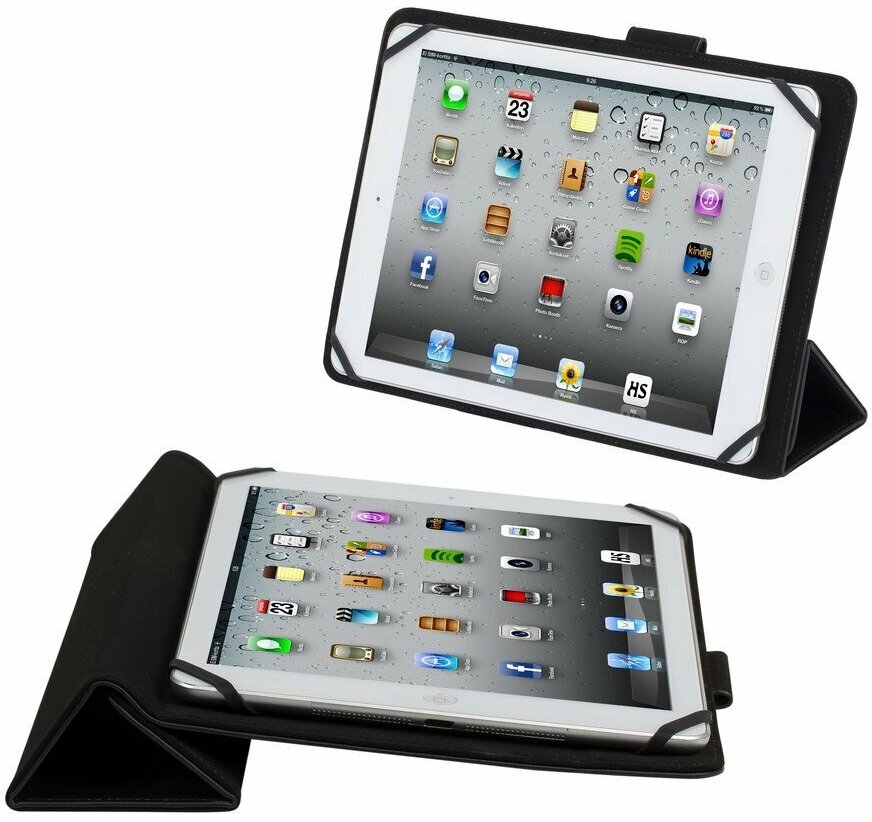Универсальный чехол для планшетов с диагональю экрана 10,1 дюйма. В качестве крепления используются универсальные фиксаторы из эластичного и прочного силикона. Передняя панель складываясь превращается в удобную подставку. Планшет можно фиксировать в двух разных положениях в режиме просмотра.