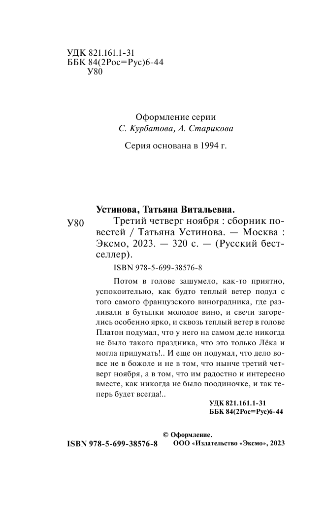 Книга: Третий четверг ноября (Устинова Татьяна Витальевна); ООО "Издательство "Эксмо", 2009