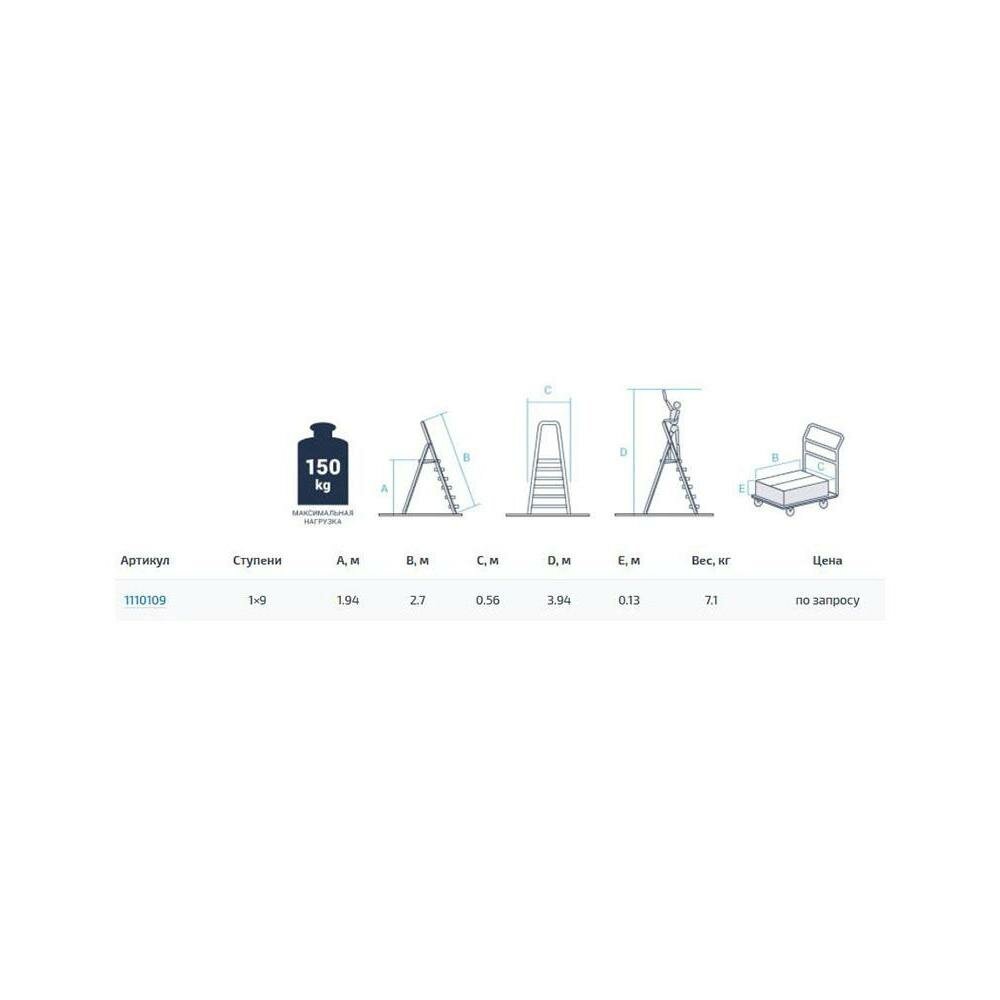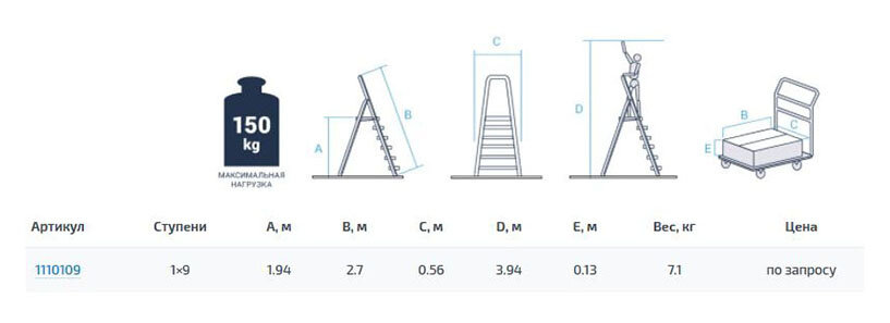 | Особенности | 9 ступеней, дуга безопасности 60 см., верхняя площадка, ширина ступени 80мм |