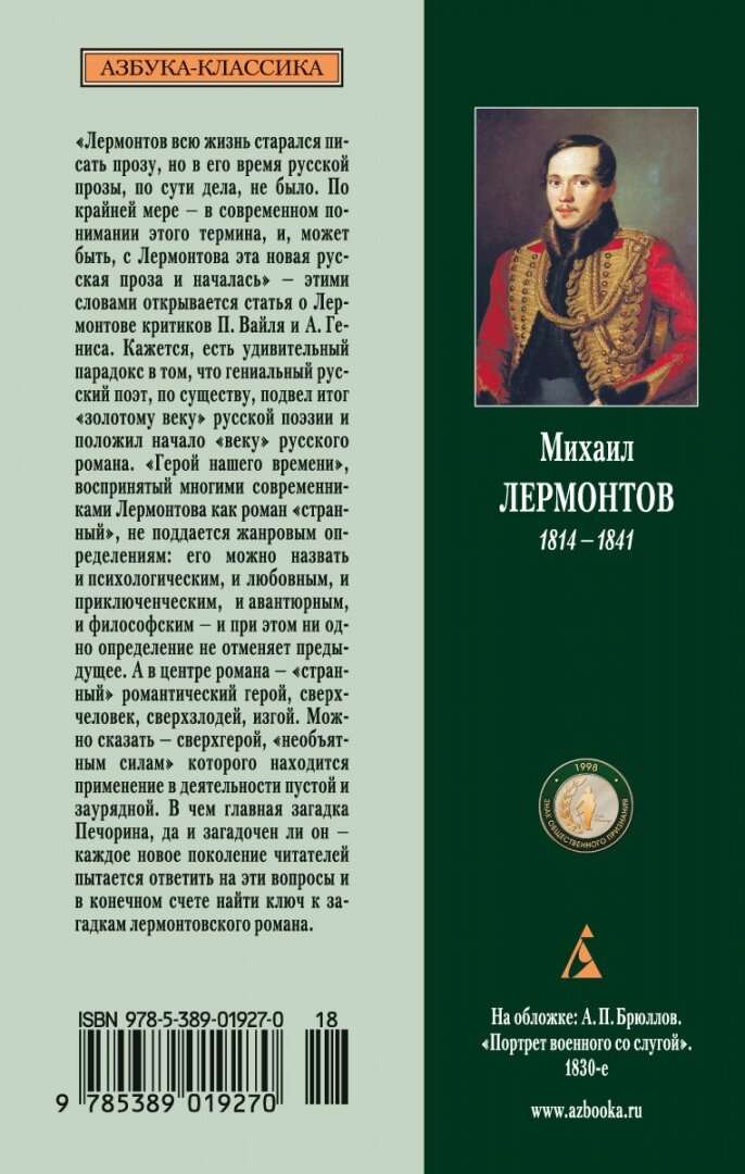 Герой нашего времени: Роман. Лермонтов М. (Лермонтов Михаил Юрьевич); Азбука, 2025