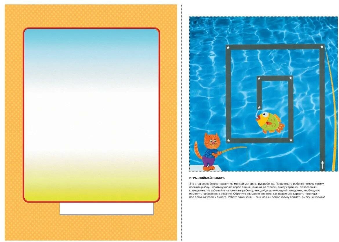 Занятия представлены по возрастанию сложности заданий, начав с салюта, малыш сотворит солнышко, ежика, полянку с ягодками, божью коровку, рыбок, нарядит елку.