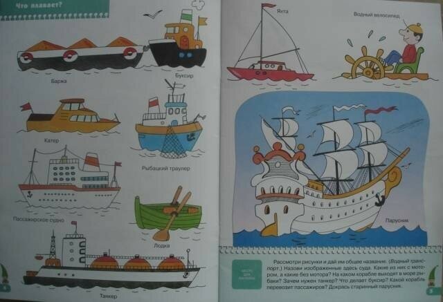 Ребенок узнает для каких целей предназначено каждое средство транспорта, а также выполнит увлекательные задания, используя наклейки.