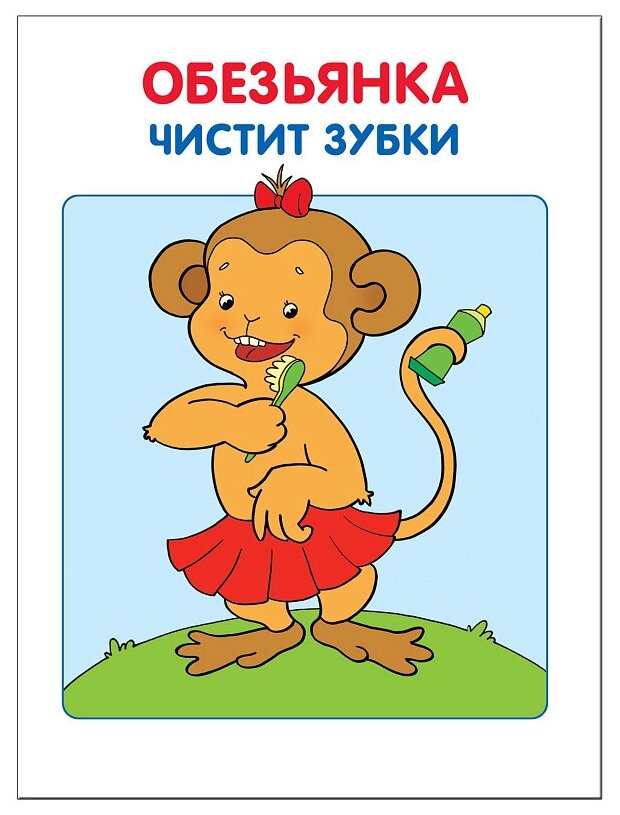В книжке на каждой странице иллюстрация с каким либо животным, которое что -либо делает. Например: курочка подметает двор или лягушка весело прыгает и тд. Будем честны, что иллюстрации мягко говоря так себе, это субьективно. Обьективно - для малыша пойдет. Порадовал вкладыш на картоне. Нужно сделать картонную собачку и вырезать маску медвежонка)