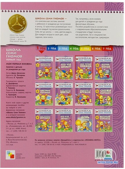 Книжка "Моя первая книжка" из серии "Школы семи гномов", первый год обучения представляет собой пособие для родителей.